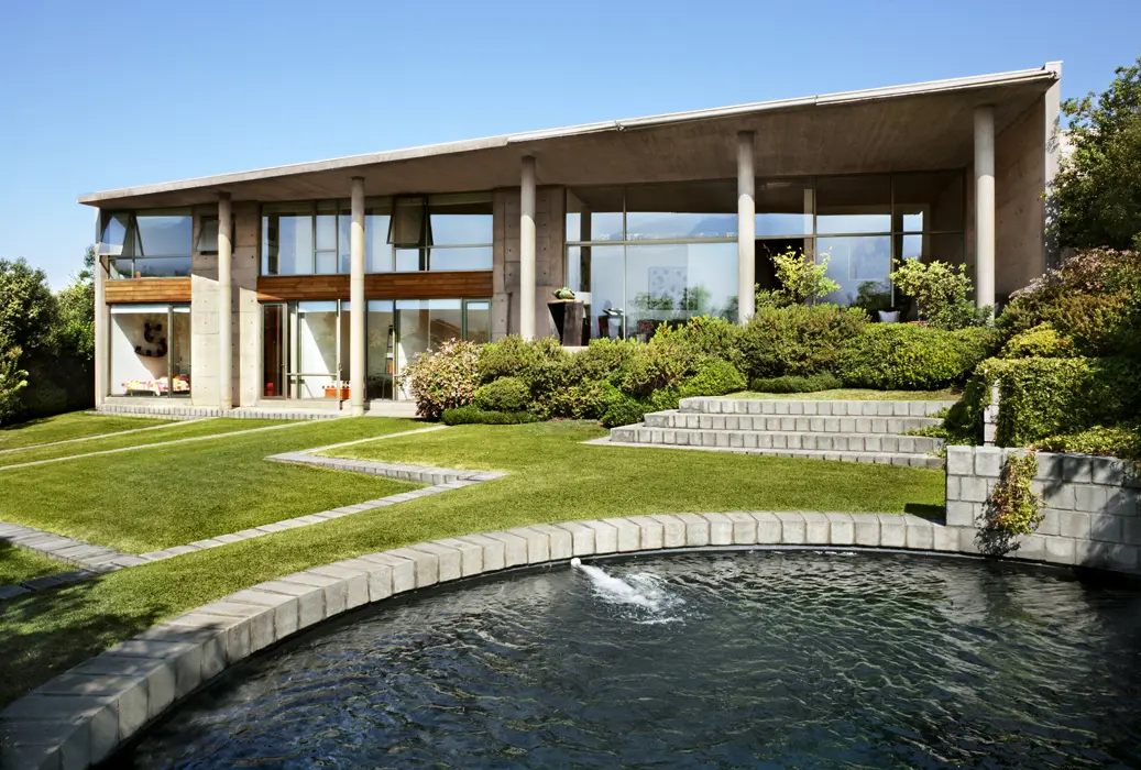 El reconocido arquitecto chileno Cristián Undurraga diseñó una casa que juega en el exterior con una hermética fachada de concreto y en el interior, con la transparencia de enormes ventanales que se abren ante el espectáculo de la cordillera de los Andes.