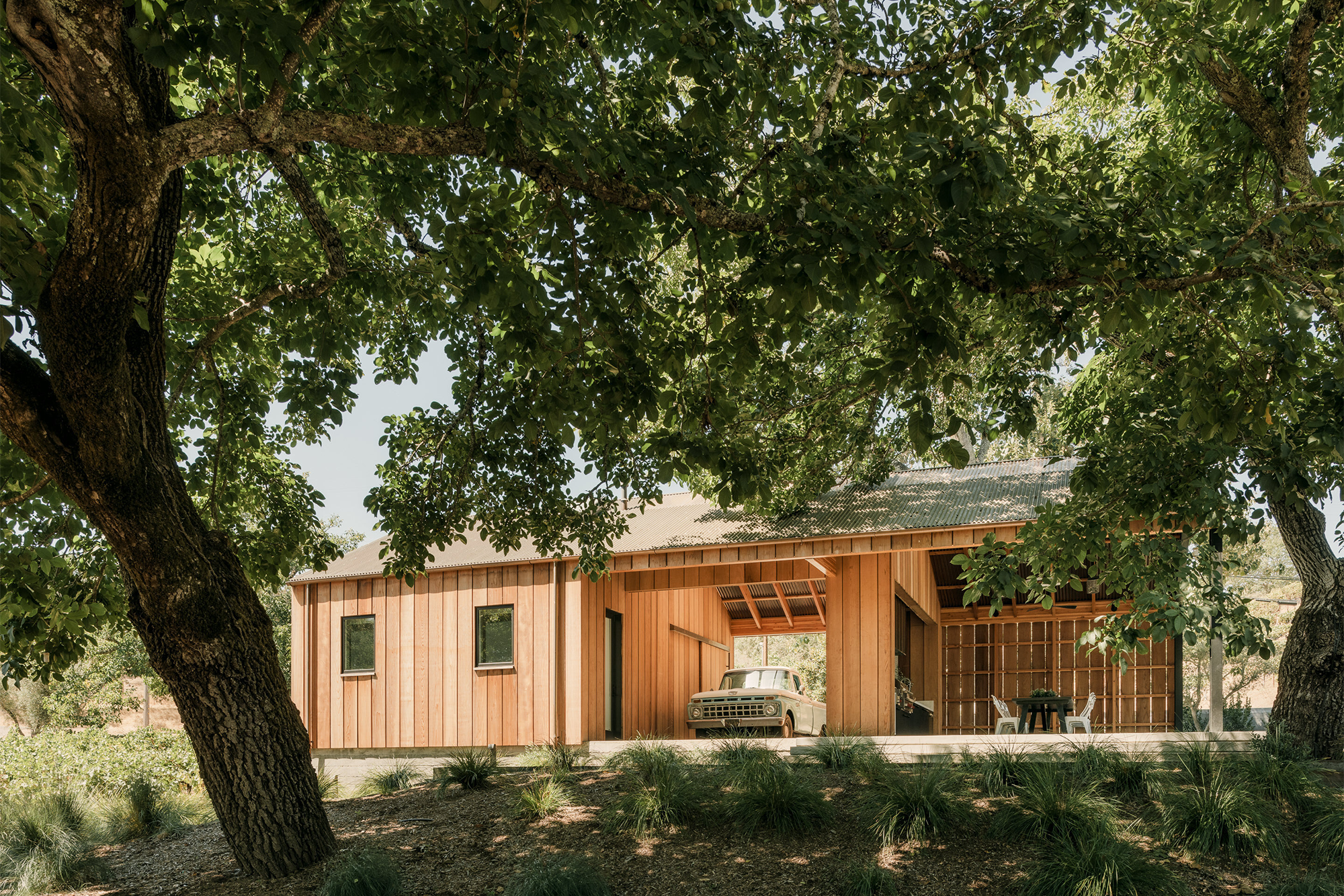 El resultado es un diseño que une la casa y la piscina existentes con el nuevo granero, dando con un complejo vinícola cohesivo definido por un paisajismo exquisito y líneas de sitio decididas.