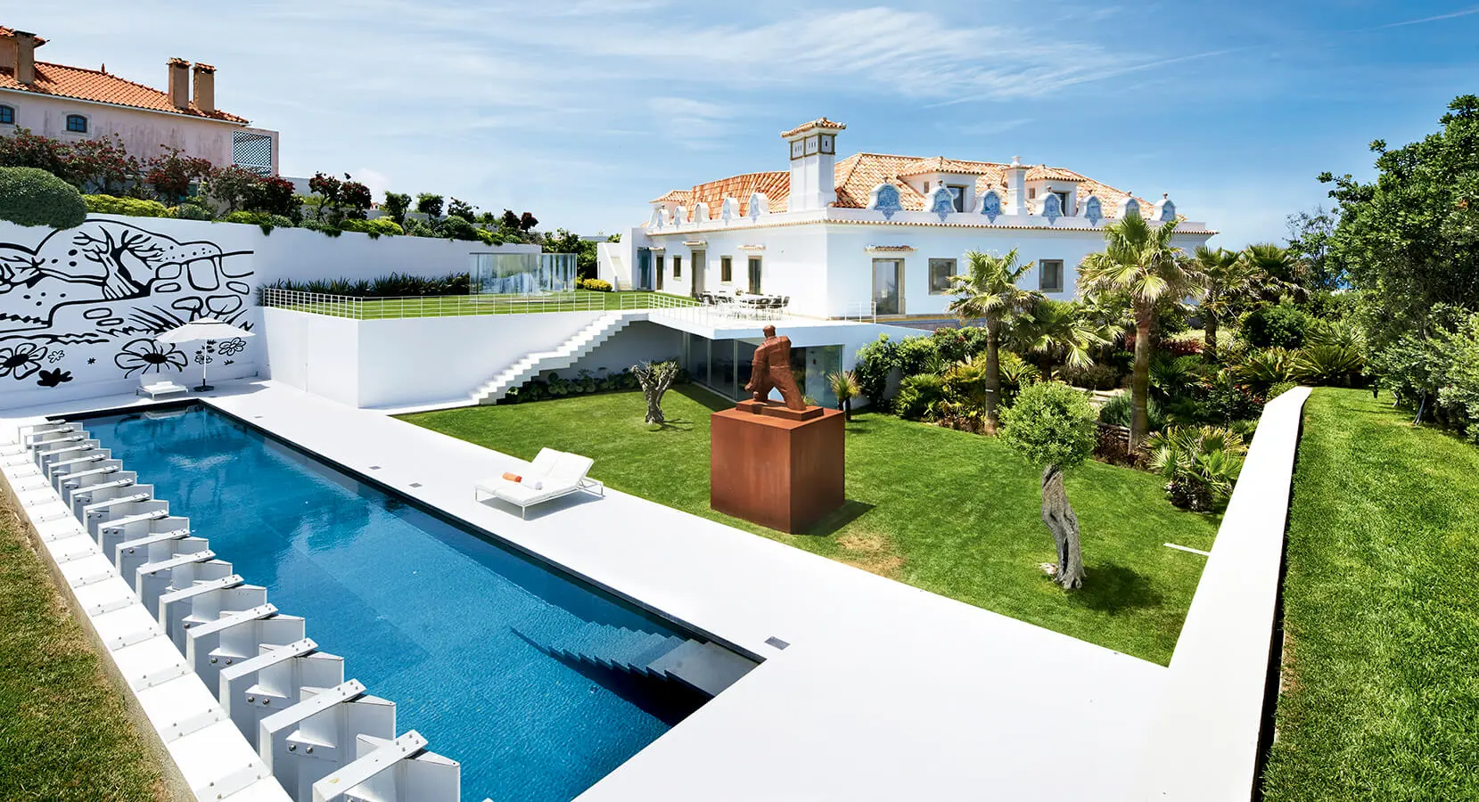 La audacia creativa del arquitecto bogotano Jorge Lizarazo y el espíritu transgresor y visionario de sus clientes –una pareja colombo suiza de coleccionistas de arte– le dieron nueva vida a las ruinas de un palacete lusitano de 1900, ubicado frente al mar en la región de Colares, en la parte baja de Sintra, Portugal.