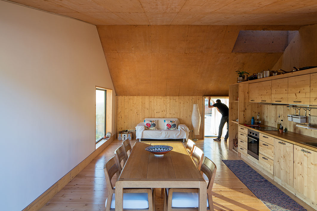 La plaza Boa Vista hace honor a su nombre: desde ella se observa tanto el valle Barris como el castillo medieval. Y en un estrecho terreno vacante que enfrenta a la plaza, Paratelier, estudio de arquitectura con oficinas en Lisboa y Roma, dirigido por Monica Ravazzolo y Leonardo Paiella, proyectó la Casa Zé. Estos jóvenes arquitectos actúan frecuentemente en las áreas de arquitectura y diseño de paisaje, y de alguna forma esta vivienda aúna ambas disciplinas, ya que la construcción se funde en el paisaje del lugar e integra, asimismo, las vistas del entorno en sus espacios.
