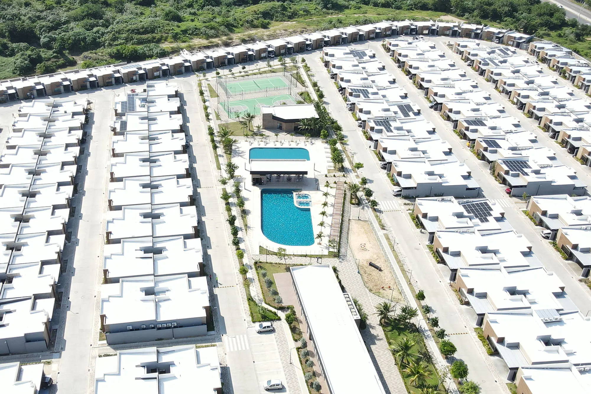 Los productos que estas dos compañías aportan al diseño de este proyecto resistencia y durabilidad, a su vez que contribuyen a la eficiencia térmica y acústica, ideales para el clima de Barranquilla. Las viviendas, rodeadas de naturaleza, se convierten en un refugio moderno lleno de confort.