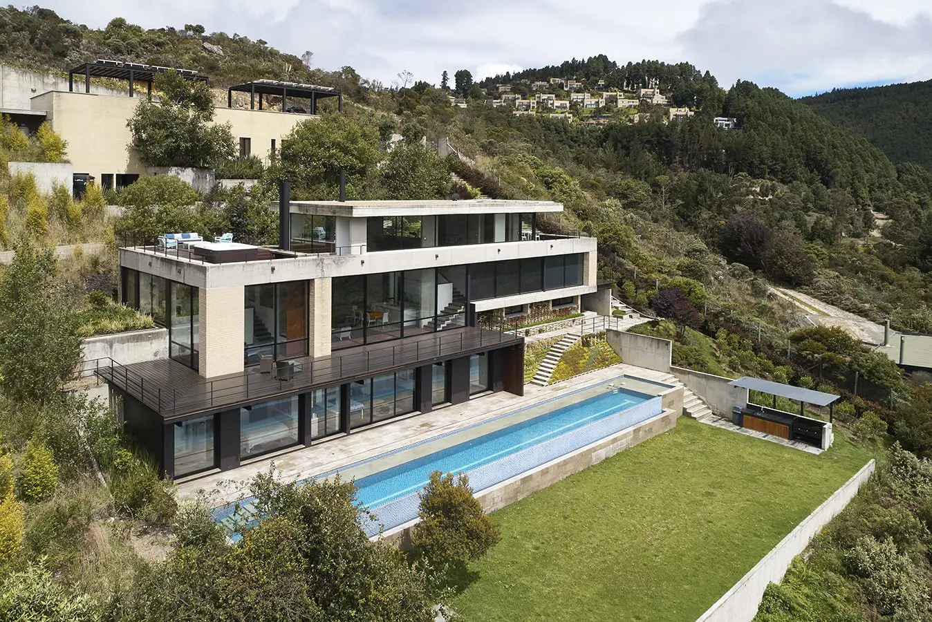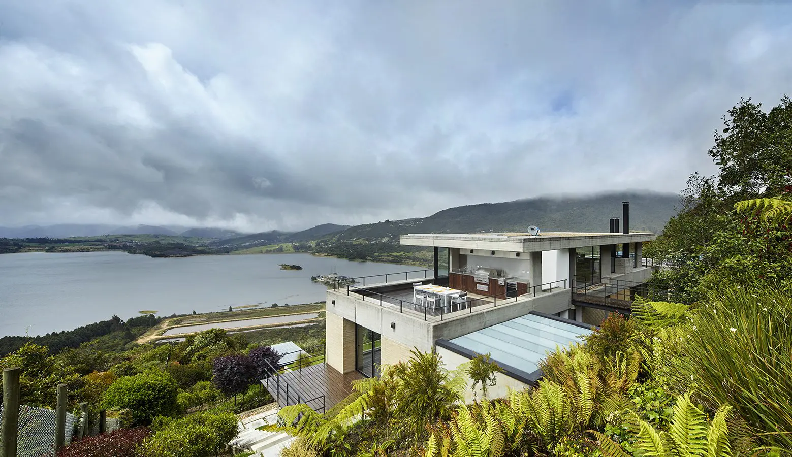 La respuesta que da la arquitectura a su entorno se expresa no solo en términos estéticos y de uso, aprovechando las visuales sobre el embalse y la cercanía de las montañas, sino también en cuanto a energía y sostenibilidad, valiéndose de manera responsable y eficiente de las bondades que ofrece el lugar.