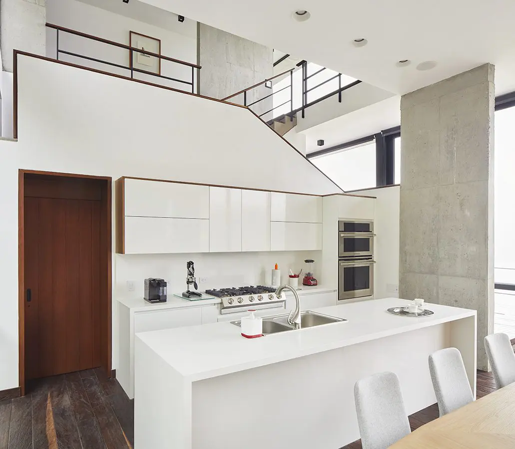 En el nivel inferior, donde en un comienzo se pensó la parte de servicio, finalmente se dispuso un apartamento para invitados, privado e independiente, que disfruta de las mismas condiciones privilegiadas del resto.