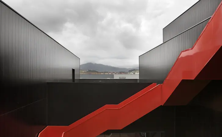 Las formas industriales de la Fundación Metal en Avilés, Asturias, recuerdan los patios de almacenamiento de láminas de la vecina fábrica de ArcelorMittal. El diseño de Baragaño Arquitectos se plantea como una serie de contenedores de acero desplazados que dan lugar a fragmentos de ciudad como pasadizos, patios, miradores y terrazas.