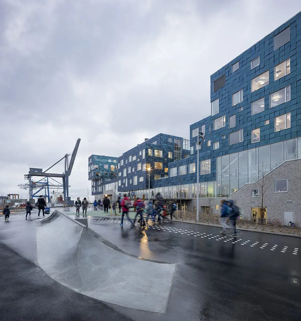 La arquitectura educativa moderna está diseñada para vincular las instalaciones de la escuela con la esfera pública en el entorno urbano y darle a la escuela un ambiente abierto. El paseo marítimo fuera de la escuela se convertirá en un espacio urbano junto al puerto que brindará oportunidades para la relajación y diversas actividades.
