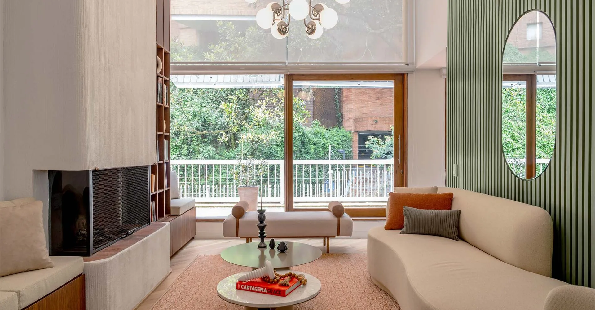 Este apartamento , construido hace varios años, presenta una serie de características arquitectónicas particulares, potenciadas mediante la remodelación llevada a cabo por Basalto Studio . “Si bien este inmueble no se encuentra en un edificio con valor patrimonial, distintas cualidades espaciales, como la variedad de alturas y una cubierta inclinada que enfatiza su amplitud y luminosidad, se convirtieron en una referencia no solo para fomentar la conexión con el exterior, sino para diseñar la carpintería arquitectónica y el mobiliario”, explica Susana Garavito, arquitecta fundadora del estudio encargado de este proceso de cambio.