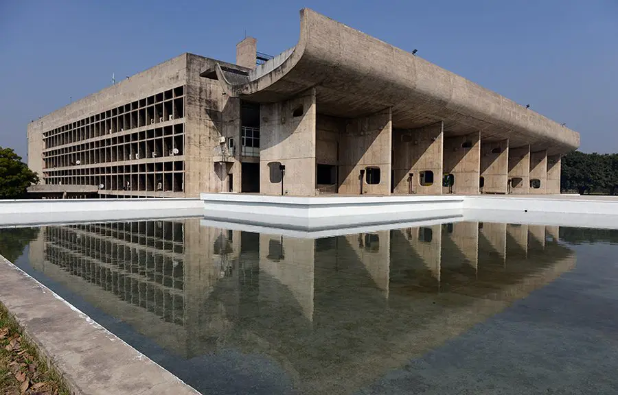 El Palacio de la Asamblea de Chandigarh, de Le Corbusier, es una obra paradigmática de la arquitectura moderna de mediados del siglo XX. El uso del concreto permite un despliegue formal y estructural que produce una plástica singular y una espacialidad diversa.