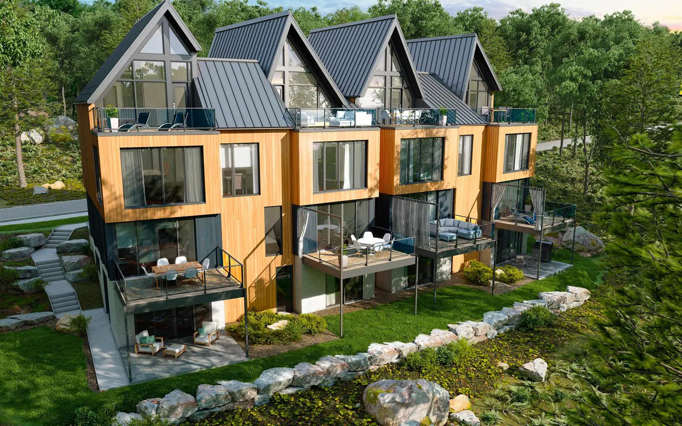 KnightsBridge, un desarrollador de bienes raíces, creó una serie única de condominios ubicados directamente en el sendero Kamloops, de Bromont Mountain, Canadá.