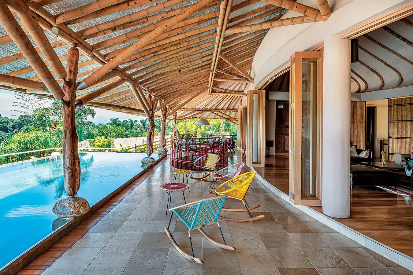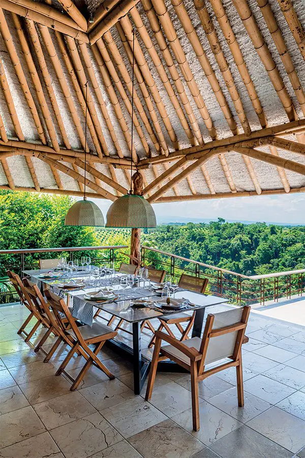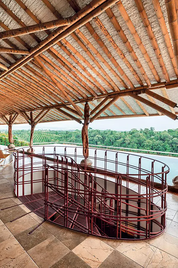 Es un paisaje precolombino, intacto, tal cual lo encontraron los españoles al llegar”, explica el arquitecto Simón Vélez, responsable del diseño y quien fuera el dueño del terreno antes de venderlo a sus actuales propietarios. Ahora, esta casa “no se ve desde afuera, fue algo en lo que insistió mucho el arquitecto.