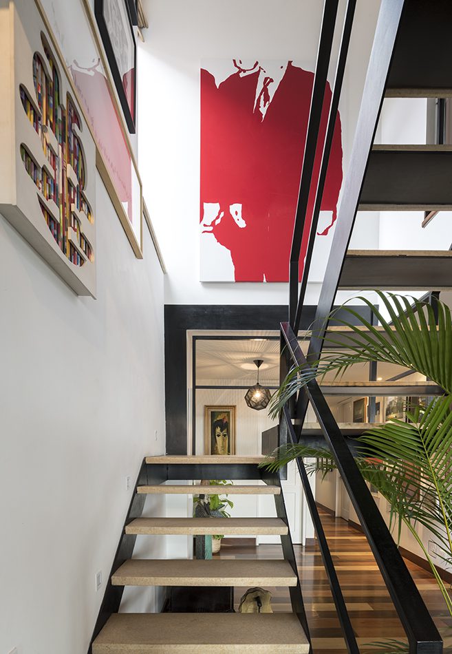 Líneas depuradas y formas ortogonales definen la arquitectura de este apartamento, donde la composición espacial se mantuvo intacta: dos plantas distribuidas en 300 metros cuadrados, aproximadamente, con espacios a doble altura que permiten iluminar la colección de arte.