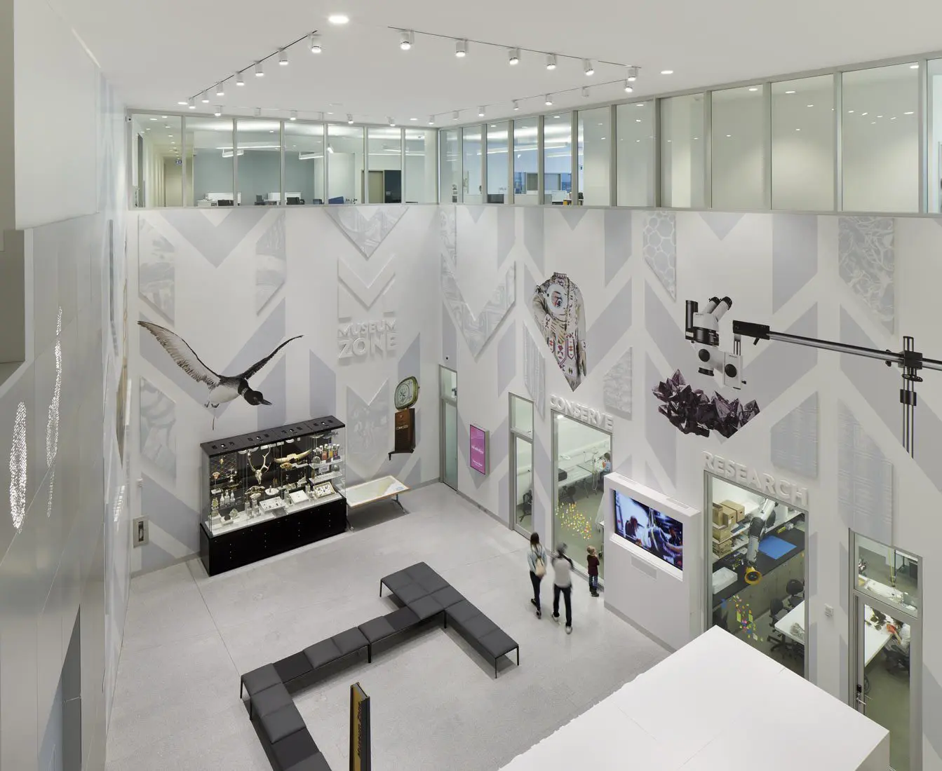 El lienzo en blanco en el corazón de la ciudad presentó una oportunidad única para crear una instalación sostenible y perfectamente adaptada, con más espacio para exhibiciones, colecciones en crecimiento y laboratorios de investigación de vanguardia.
