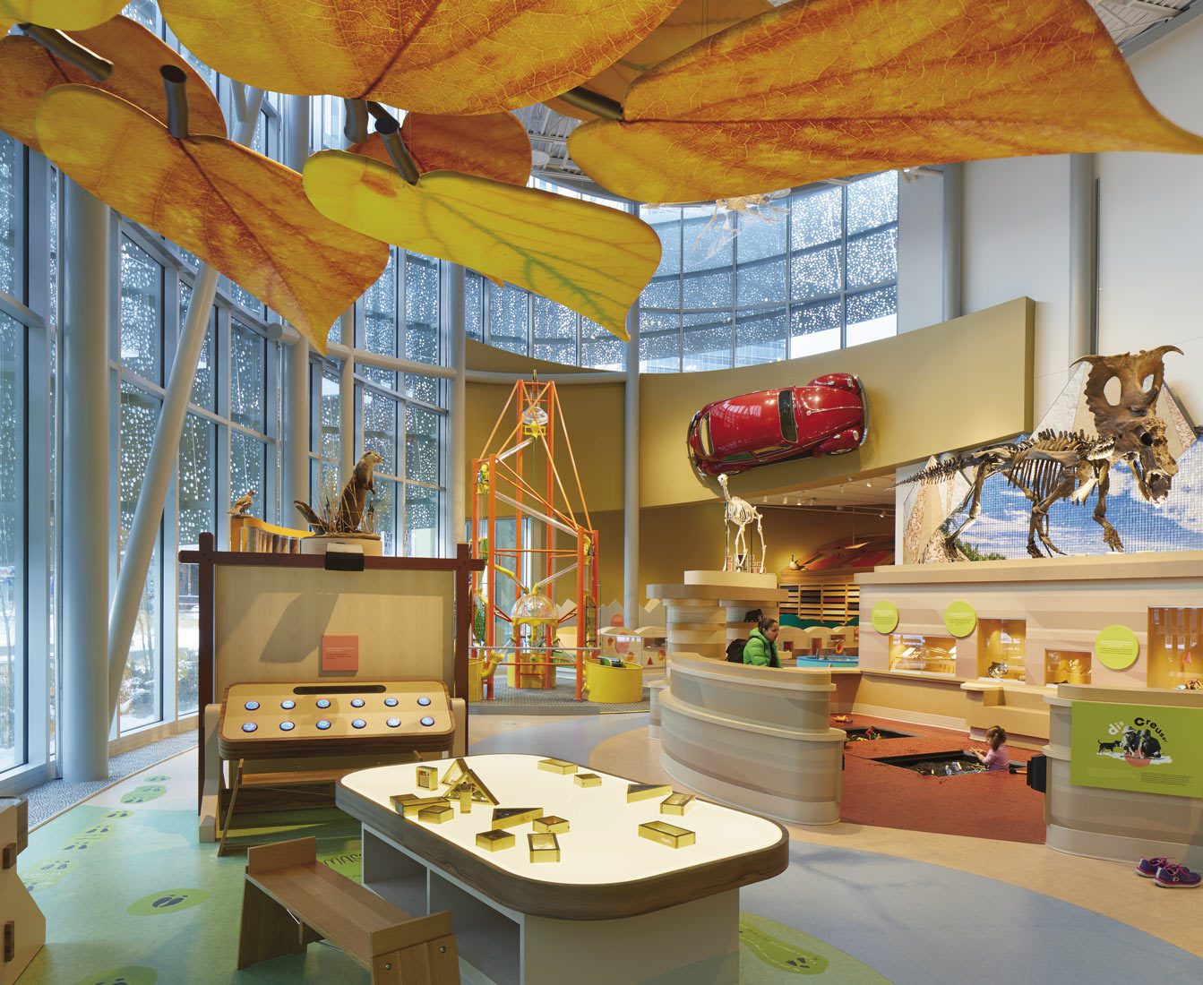 Además de los hermosos espacios al aire libre de RAM, que incluyen un vasto jardín y dos patios, la naturaleza se incorpora al diseño del edificio a través de una variedad de homenajes creativos que reflejan la historia natural de Alberta. Por ejemplo, el interior de la Galería para niños evoca la sensación de estar dentro de una fortaleza arbórea en el exuberante bosque boreal de Alberta.