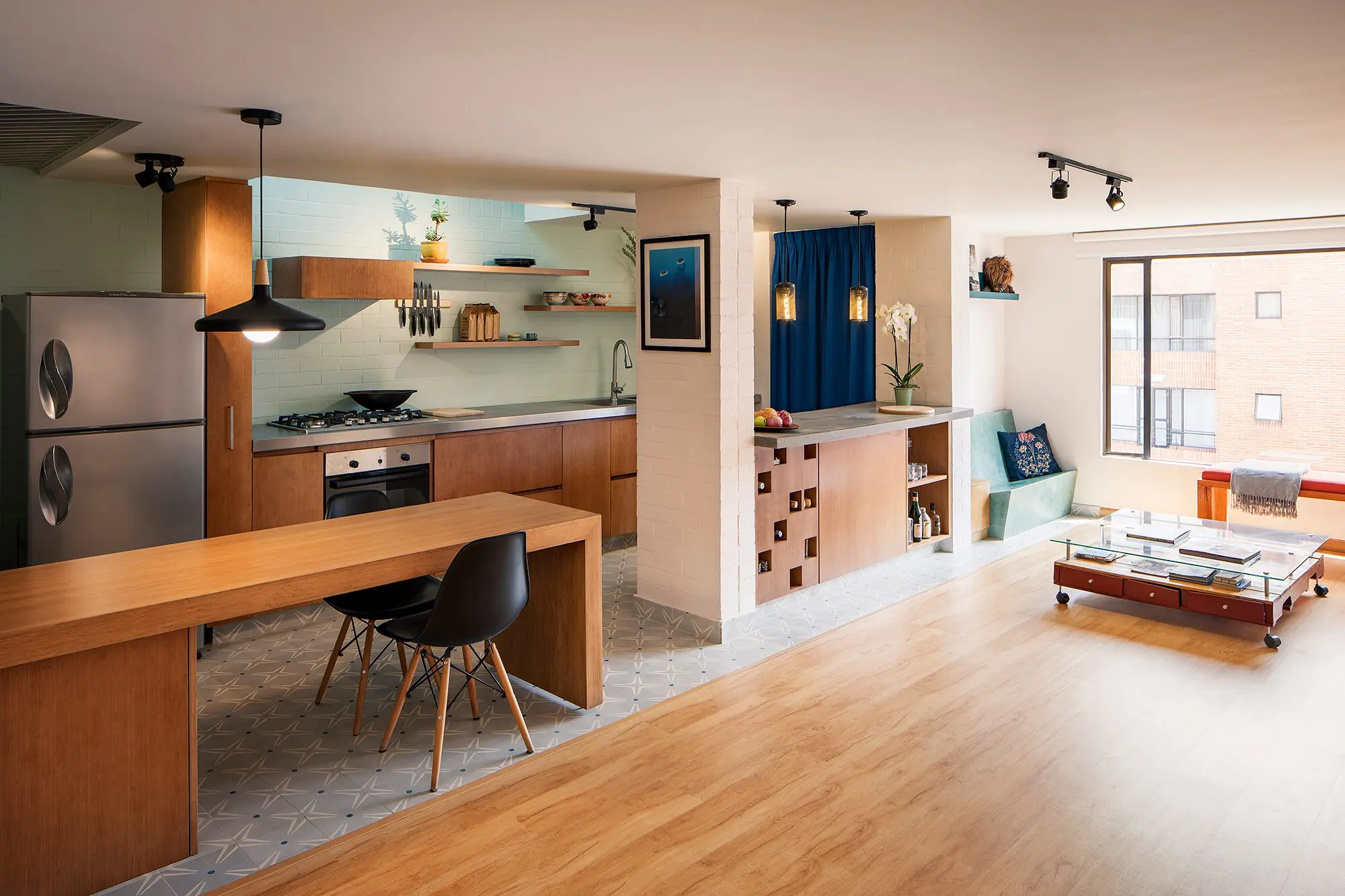“Este proyecto, que hemos denominado Vasco, consiste en un apartamento dúplex ubicado en el parque El Virrey, en Bogotá, destinado a una joven pareja y sus dos mascotas”, comentan las arquitectas de la firma Hs2e. De ahí que en su remodelación hayan apostado por crear un ambiente acogedor y estimulante, que invita a disfrutar cada rincón del hogar.