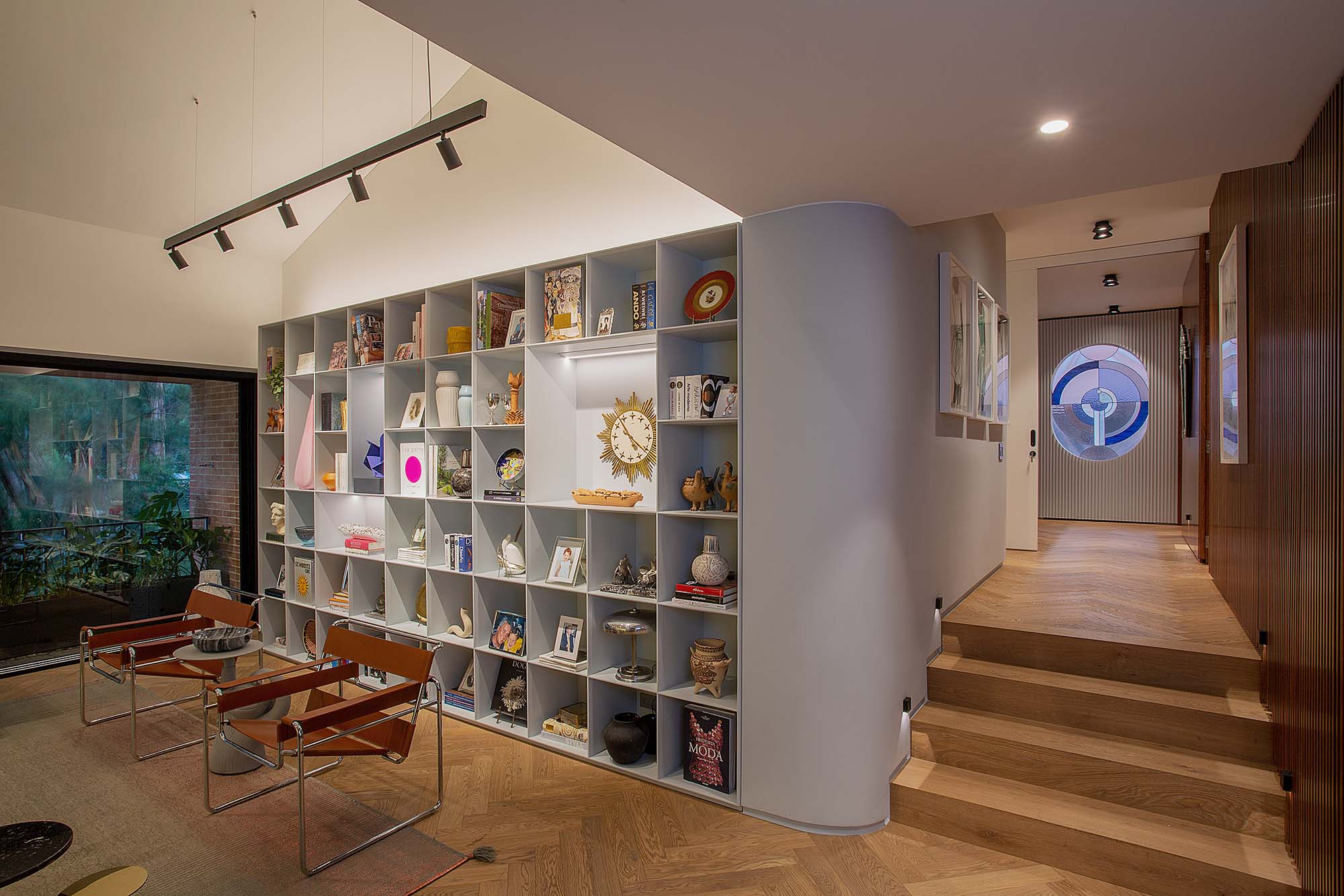 Lo anterior se refleja en este apartamento en Bogotá, realizado por Jotaele, donde replantearon el recorrido desde la entrada, al eliminar paredes y áreas cerradas, para generar una nueva estructura de dobles alturas y niveles pausados. Con el fin de darle unidad a la vivienda, utilizaron apliques en puertas y paredes, un piso de roble europeo en espina de pescado y esquinas curvas, entre otras estrategias.