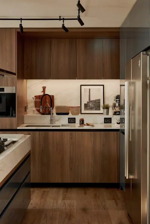 Ahora que estamos más en casa, cocinamos más y compramos y almacenamos más. Por esto, tanto la nevera como la despensa deben ser generosas. Las canastillas para las frutas y las verduras, los accesorios para organizar condimentos, los envases en vidrio para guardar los granos y los no perecederos ofrecen la posibilidad de exponer algunos de estos elementos, ganar eficiencias en el espacio y aportar a la calidez y la estética de la cocina. La iluminación es otro punto fundamental. Se debe evitar la luz blanca, demasiado fuerte e impersonal, y apostar por una iluminación más cálida y hogareña, que transmita sensación de tranquilidad y recogimiento. Debe ser suficiente para
