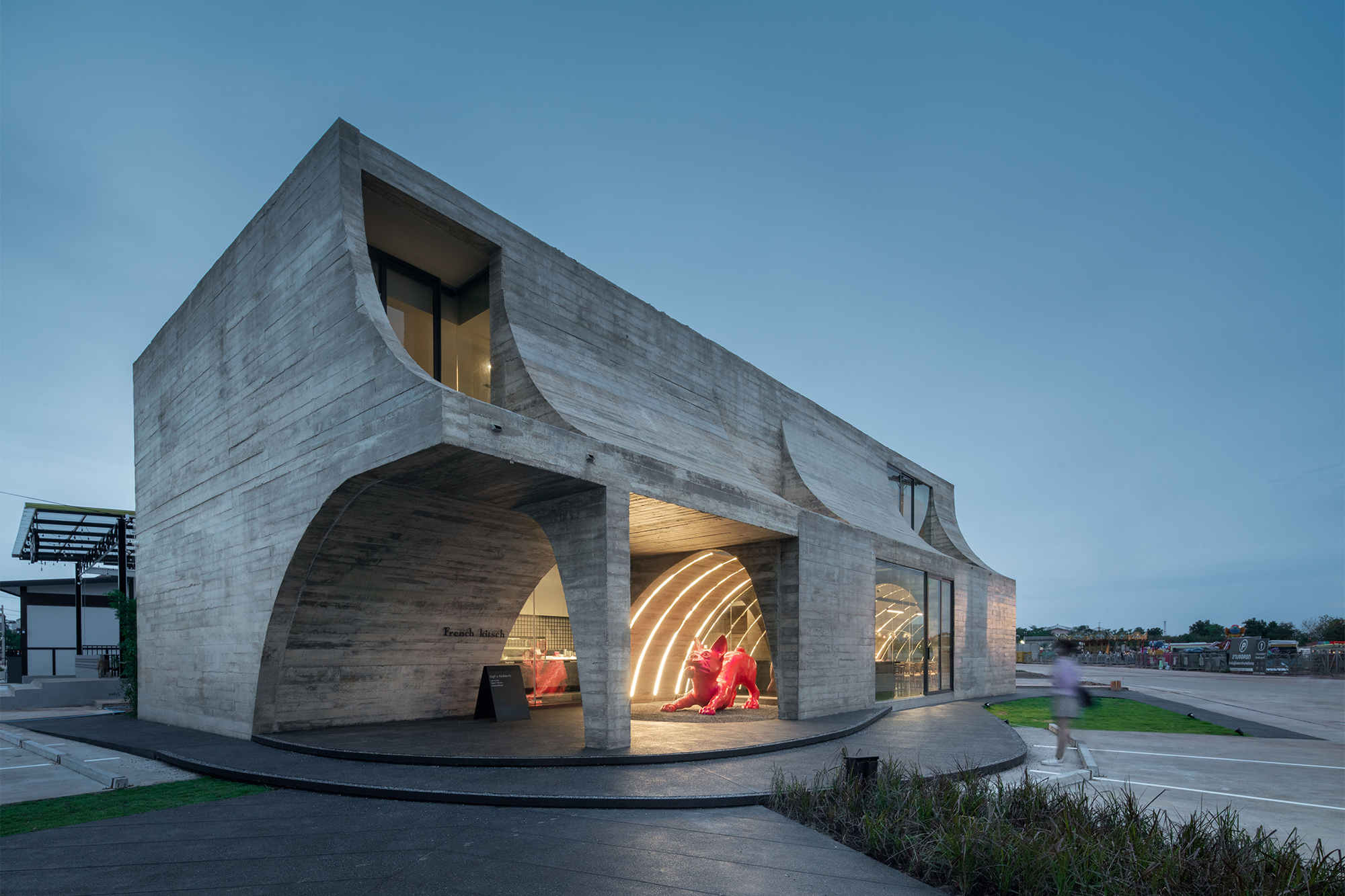 El diseño, por la firma TOUCH Architect, tiene como objetivo realzar esta imagen junto con el concepto de «kitsch«, una forma de arte que aprecia la imperfección a través de elementos y materiales arquitectónicos, que hace referencia a una forma imperfecta de «croissant«.