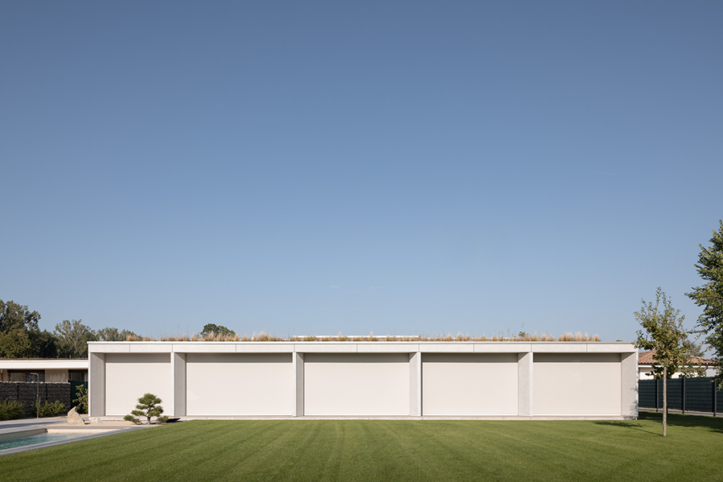 La intención era crear un marco espacial generoso con un eje visual continuo, que va desde la entrada hasta el jardín. Por ejemplo, hay un amplio garaje que une perfectamente la entrada y el exterior a través de inteligentes conexiones de vidrio.