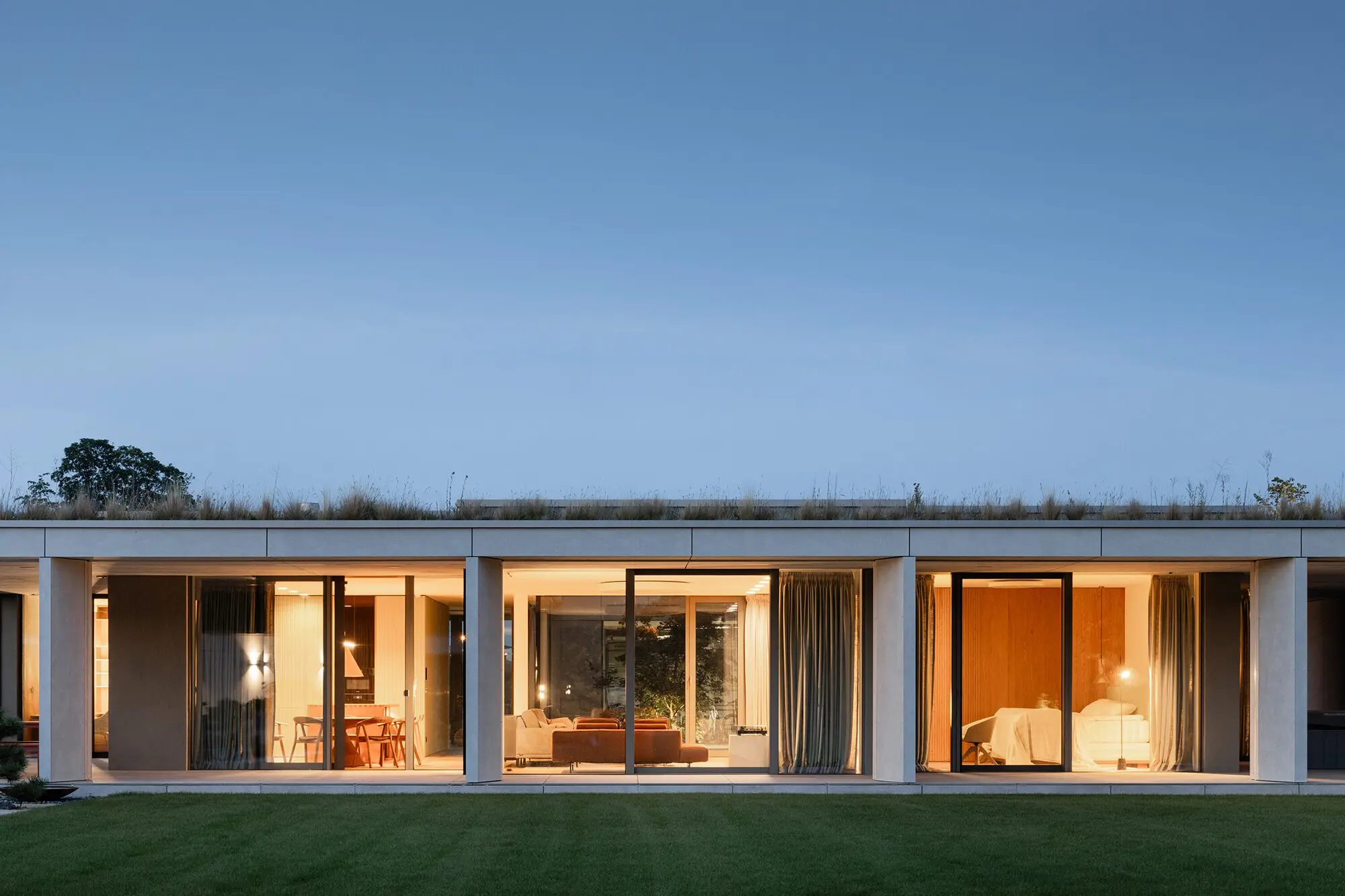 En las afueras de Trnava, Eslovaquia, se está construyendo un nuevo barrio residencial. El típico tapiz de calles que se entrelazan a través de un tablero de ajedrez de casas conduce a vastas parcelas que ofrecen vislumbres del esplendor natural cercano. Aquí mismo, encontramos un amplio espacio para fomentar un concepto de casa a nivel del suelo perfectamente conectada con su jardín.
