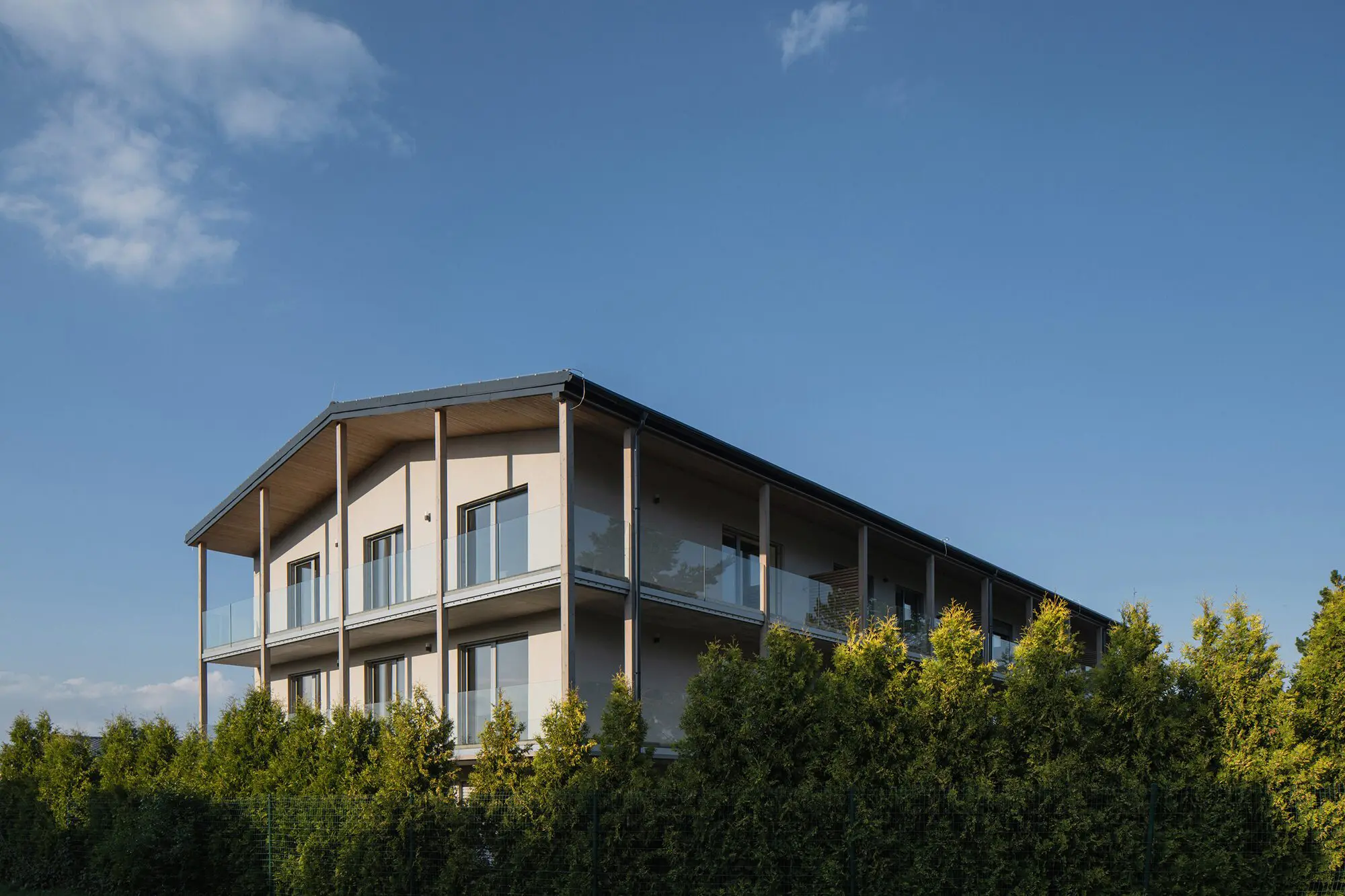 Abordar la forma de un edificio residencial en medio de un pequeño pueblo, no de una ciudad, fue un desafío interesante para los arquitectos de la firma Karnet Architekti encargados del diseño de este edificio.