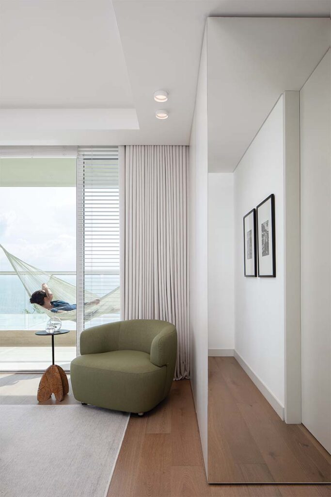 Realizado por TARQ Studio en colaboración con la arquitecta Margarita Salazar, “este penthouse ofrece un refugio tranquilo frente al mar, donde el diseño y la naturaleza se encuentran en armonía”, explica Eduardo Torrente, fundador de la firma. Y es justo esto lo que se percibe desde el primer instante: una atmósfera donde cada espacio habla de serenidad, estética y pertenencia.