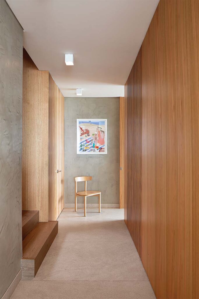 En cuanto a la elección de materiales, obedece a un lenguaje simbólico, clave para lograr atmósferas que se sienten más vivas. El porcelanato en tonos arena evoca las playas cercanas; la piedra travertina en las zonas exteriores resalta la conexión con la naturaleza, y la madera aporta calidez, textura y profundidad. “Involucramos materiales que no habíamos empleado antes en la playa, como la madera natural en el segundo nivel”, explica Torrente.