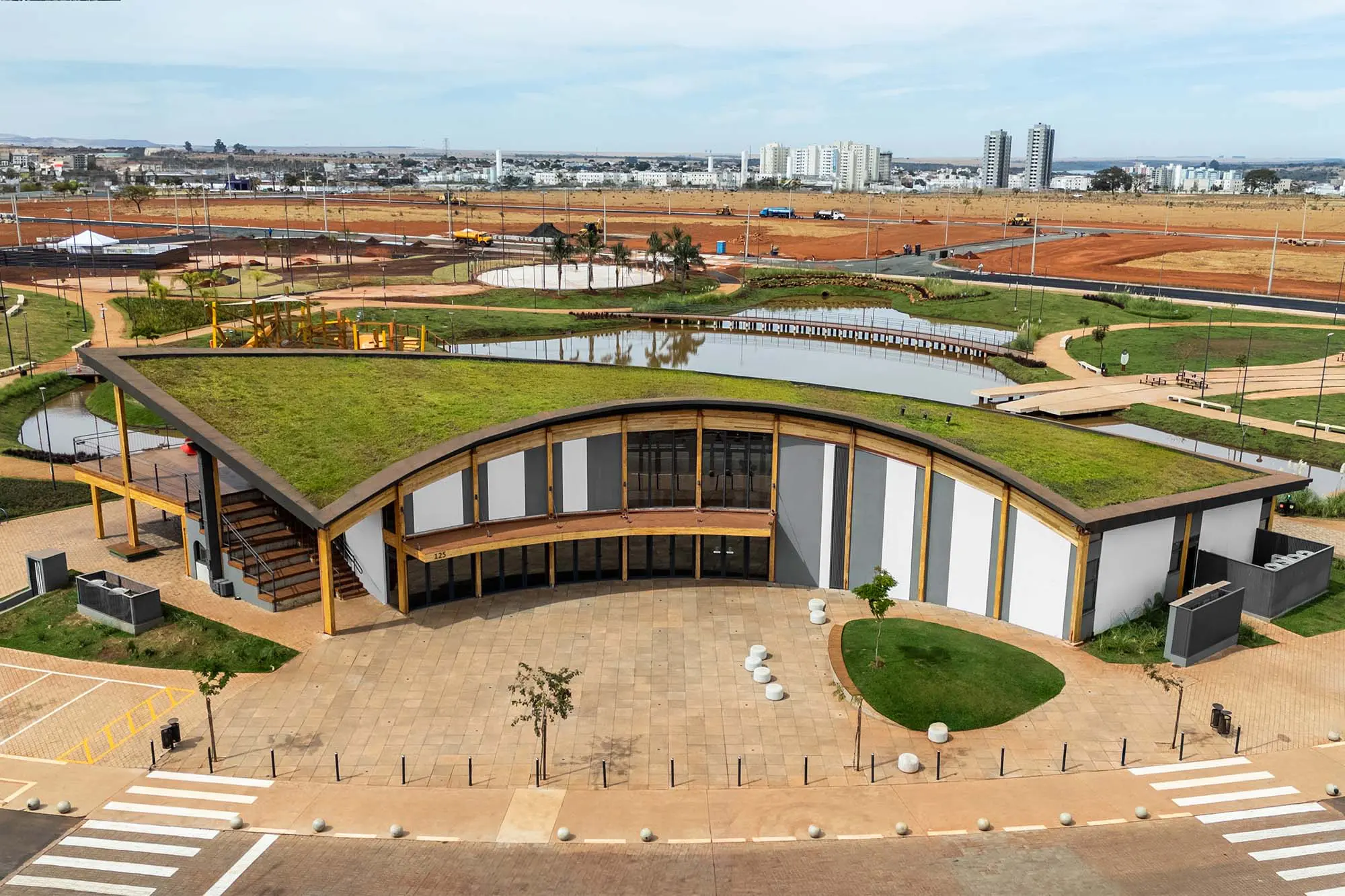 El proyecto fue realizado por el estudio MDAD Arquitetura e Design, bajo la dirección del arquitecto Matheus Diniz, con interiores diseñados por TODOS Arquitetura. La estructura, de 1.060 m², se proyecta con una premisa clara: ser adaptable, abierta y profundamente enraizada en su contexto. Una arquitectura que no impone, sino que acompaña el ritmo del parque, del clima y de la gente.