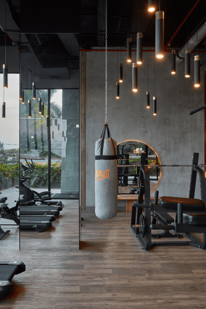 Los ambientes intervenidos: lobby, gimnasio, bike box, sala de cine, salón social/bar, coworking, terraza y un sorprendente espacio descubierto –del que pende un árbol seco transformado en escultura– expresan muy bien la estética y la obsesión por los detalles que caracteriza a esta dupla.