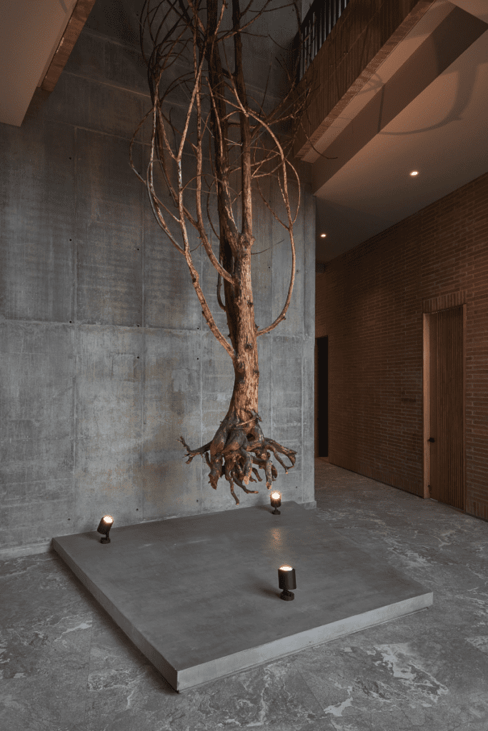 3. En un espacio descubierto, los arquitectos transformaron un árbol seco en una escultura.