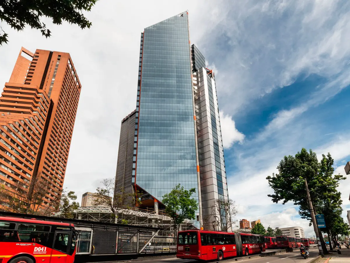 Las torres están facetadas y escalonadas para responder a sus determinantes urbanas, a la cercanía con sus vecinos y a las exigencias estructurales y de uso propias de un proyecto de esta envergadura. Al llegar al suelo se abren por completo hacia el exterior, se funden con lo público, lo activan e incorporan a los espacios construidos. A partir del uso extenso de pérgolas que protegen de la lluvia, de una serie de pabellones comerciales que generan puntos de encuentro y actividad, y de una sucesión de plazas y jardines, los 14 mil metros cuadrados de ambiente público que se despliegan entre los edificios se convierten en la mejor manera de acceder al centro de la ciudad, en un lugar para estar y disfrutar, en un punto de referencia y de encuentro para los habitantes de Bogotá.