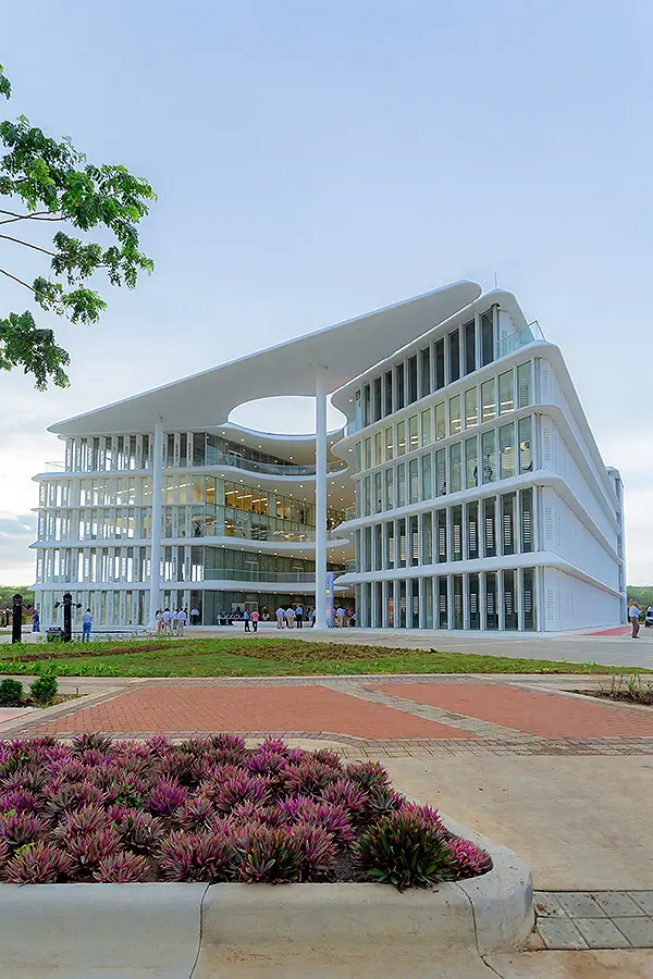 Durante la entrevista, Brandon Haw no puede contener la emoción al hablar del logro que significa haber erigido esta estructura con contratistas y proveedores nacionales, “este edificio es un testimonio de la capacidad de Colombia para innovar y para aliarse con una firma internacional”. Y tras recorrer sus recintos, queda demostrado que la Universidad de los Andes dio un gran pasó en sus 70 años de historia al concebir un espacio con la última tecnología y lo mejor en cuanto a arquitectura para llevar la formación académica de alto nivel a la costa colombiana. Finalmente, Haw asegura que “el reto más grande fue hacer que la gente entendiera que los pequeños detalles importan”, y concluye con una frase que inmortalizó el gran maestro de la arquitectura moderna Mies van der Rohe: “Dios está en los detalles”.El secreto está en los detalles