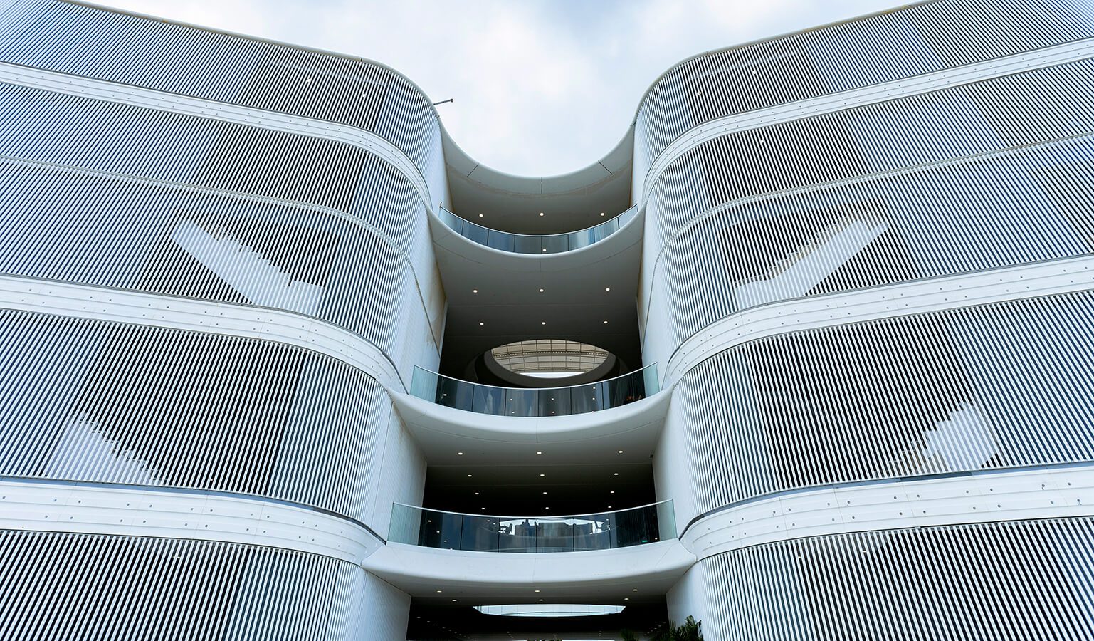 Y empleando su conocimiento sobre la ciudad, Haw orientó la estructura hacia el norte para aprovechar al máximo las corrientes de aire, que pasan por los espejos de agua del primer nivel y refrescan de manera natural toda la estructura, incluso en días de intenso calor. “Además, las áreas abiertas están bajo sombra, haciéndolas más frescas”. Elementos como los óculos del techo y las fachadas totalmente abiertas permiten que la estructura integre la naturaleza a su propuesta y, además, que a lo lejos su gran masa se perciba muy liviana, casi volátil. Sumado a lo anterior, las aletas de hormigón de la fachada, ubicadas según la orientación y patrón de los rayos solares durante el año, controlan la entrada de luz mientras mantienen la vista hacia el exterior.