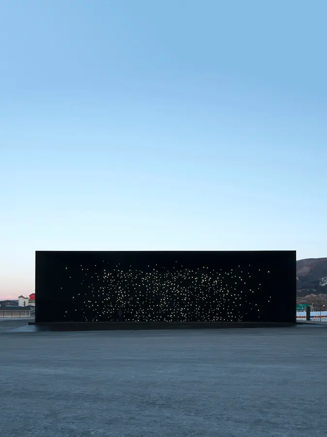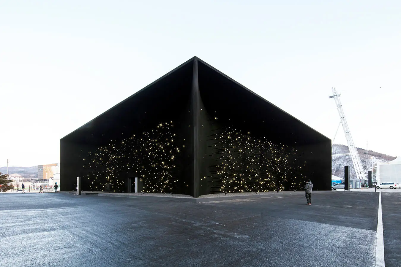 Los proyectos temporales son la especialidad de Asif Khan. El arquitecto inglés presentó al público su pabellón para las Olimpiadas de Invierno de Pieonchang 2018 en Corea del Sur. La estructura es un gran volumen negro, iluminado por una constelación de estrellas que parecen flotar en el vacío del espacio. Las fachadas de este pabellón, de 10 metros de altura, están recubiertas de Vantablack VBx2.