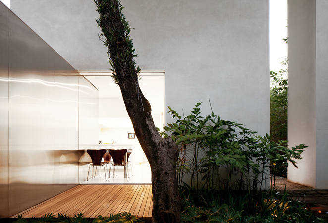 En un terreno estrecho del barrio Jardins, en la ciudad de São Paulo, el arquitecto brasileño Isay Weinfeld construyó la casa Terra Nova para una joven pareja con una hija que buscaba un espacio luminoso y ventilado con una fuerte vinculación al jardín.