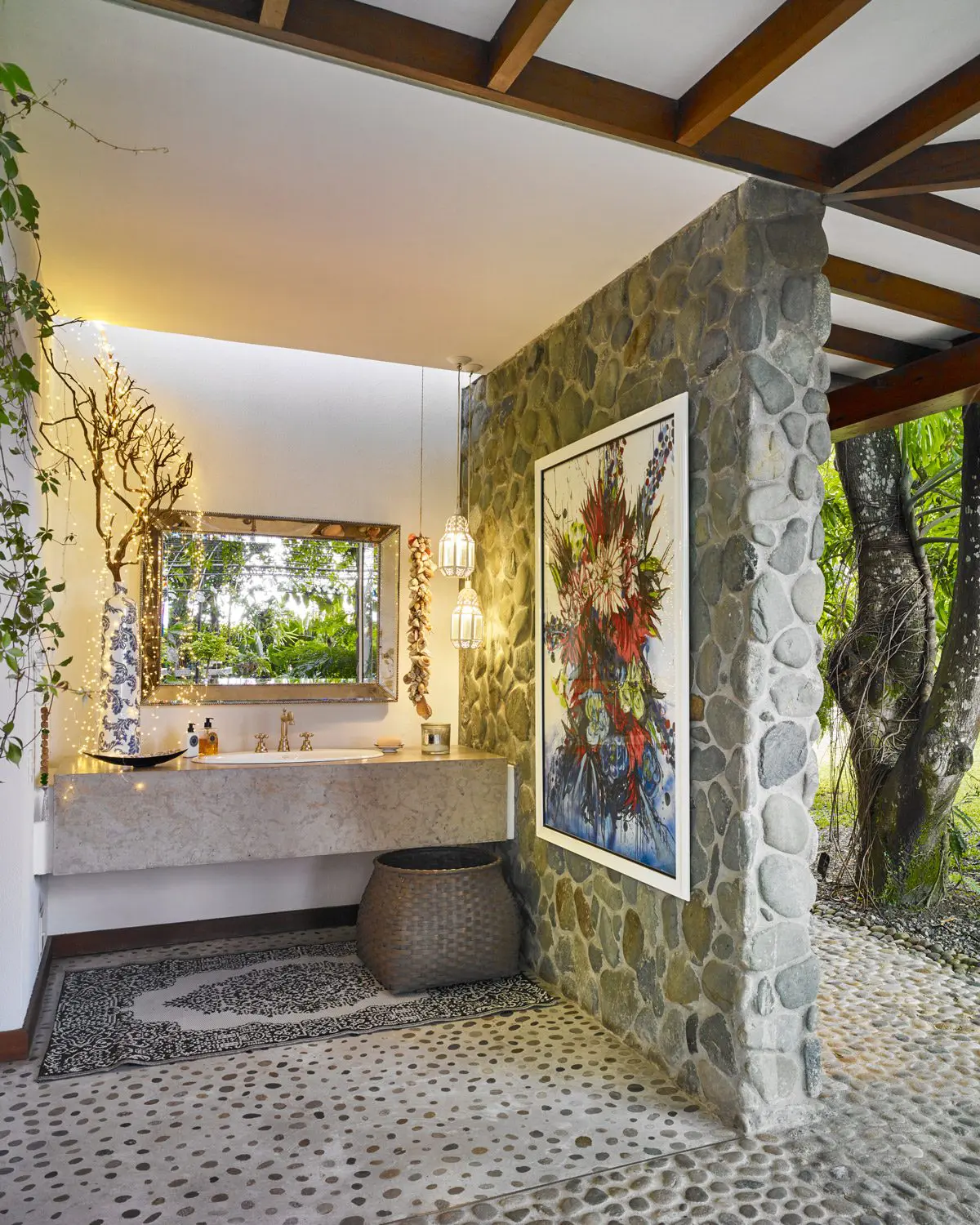 A pesar de ser interior, por medio de la propuesta decorativa este espacio se vive como si estuviera en medio de un bosque.