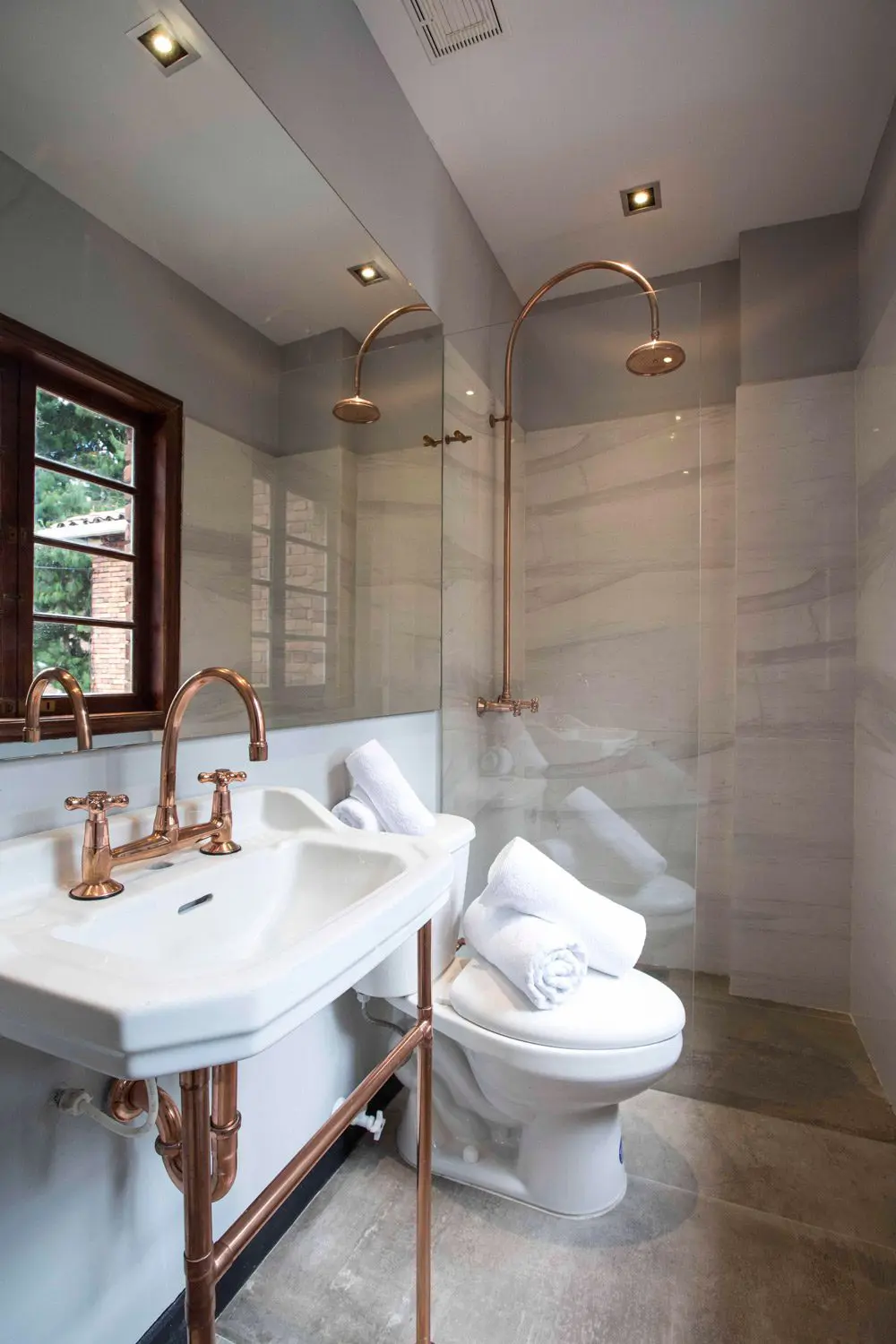 Teusaquillo es uno de los barrios más tradicionales de Bogotá, y la remodelación de este hostal –a cargo del diseñador industrial Martín Ramírez– no desconoció ese hecho. Con el objetivo de resaltar los años treinta y cuarenta, este baño tiene en las griferías de cobre su principal aliado; además, sus formas clásicas recuerdan las viejas e impactantes casas de la capital colombiana.