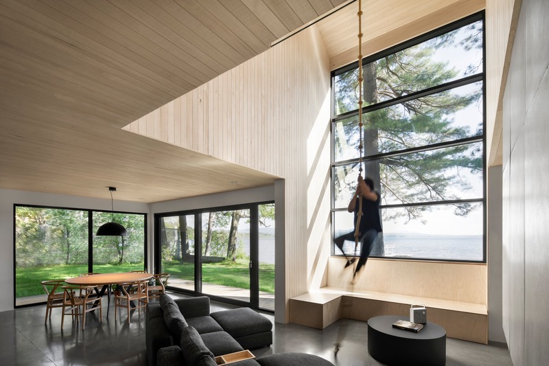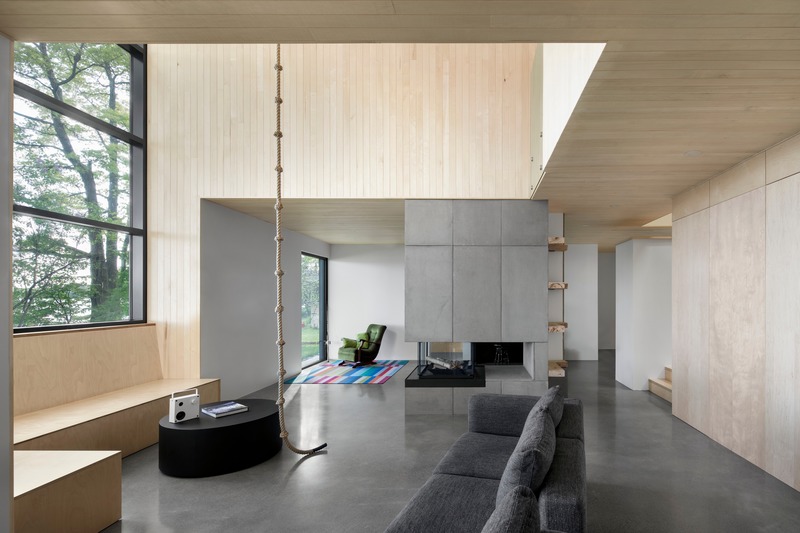 Dos hermanos han adoptado las actividades al aire libre como parte de su acelerada vida en la ciudad. Un nuevo edificio a orillas del Lago Brome, actuará como símbolo y herramienta para el cumplimiento de este compromiso – un edificio en el que compartir el tiempo con los amigos. Dividido por un atrio vertical que se abre al lago, la esencia del diseño es un suelo de hormigón con una chimenea en su centro que crea un lugar para mezclarse.