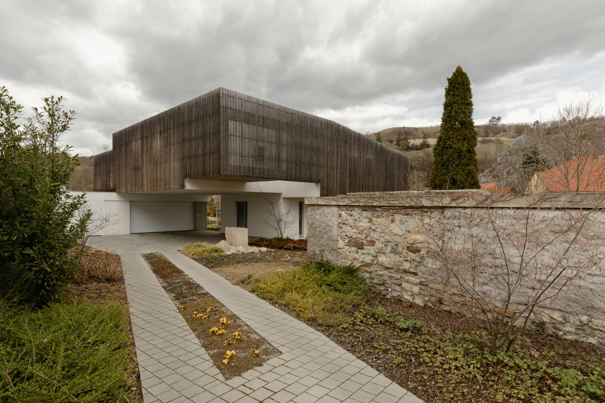 Desde el lado noroeste de la casa, ubicada en República Checa, hay biocorredor que se extiende a lo largo del arroyo Dalejský. El corredor se ve realzado por la exposición distintiva de las rocas Hlubočepské.
