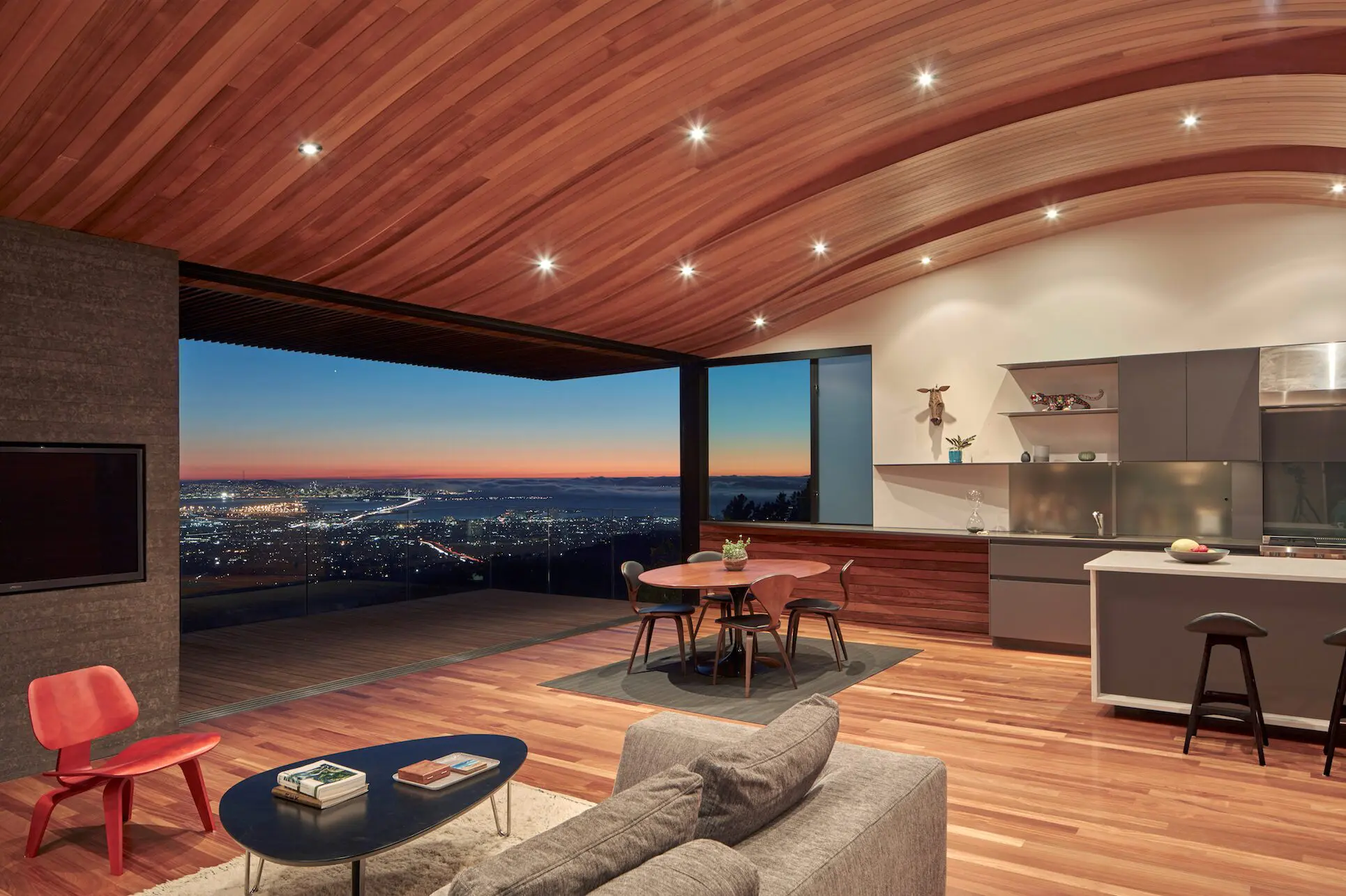 Construida en la cima de una cordillera en la ciudad de Oakland, esta casa rodeada por la vegetación de la montaña tiene la vista 360 más sorprendente y envidiable de todos los Estados Unidos la cual permite disfrutar de los mejores atardeceres y amaneceres de la región.