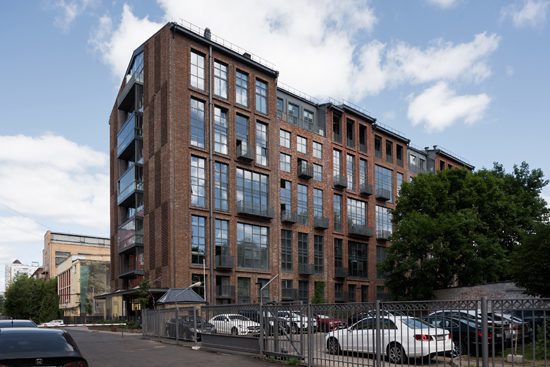 Se trata de Rassvet Loft Studio un complejo de apartamentos construido en la antigua y popular fábrica de muebles «Mur y Meriliz» de Moscú y de la que aún se encuentran rezagos sobre la nueva construcción.