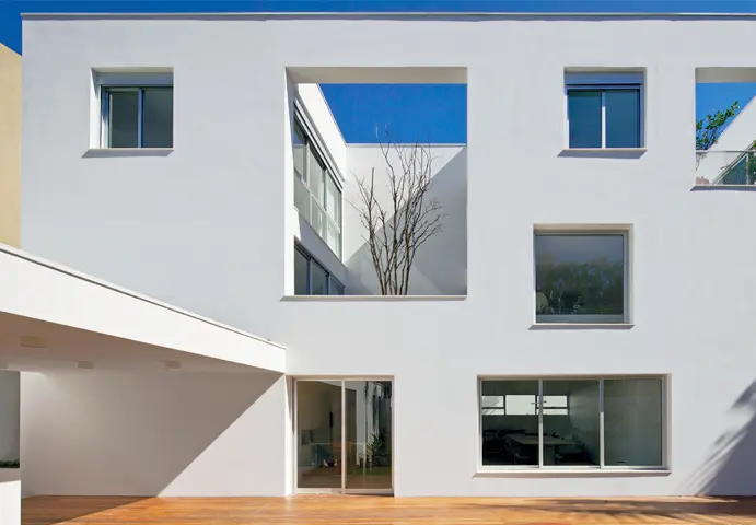 De esa transformación surge la idea de reformar esta vivienda urbana existente, con intenciones simples y precisas: dotar de aire y luz los interiores, continuidad espacial adentro y contacto directo con el exterior. “La actual Casa de los Patios es el resultado de un ejercicio de reorganización radical de los espacios y el programa, por medio de recortes y supresiones en la volumetría existente. Un prisma rectangular de 22 x 7 x 9 m fue mantenido y tomado como un sólido para ser excavado”, afirman los responsables del diseño, AR Arquitectos, un estudio liderado por los jóvenes profesionales Marina Acayaba y Juan Pablo Rosenberg.