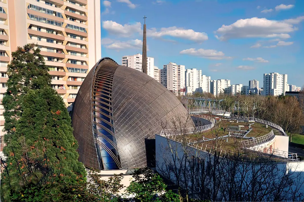 Su cúpula, en forma de pez, resalta entre los edificios de Val-de-Marne, una ciudad pequeña, a las afueras de París, y le da un aire inponente a este sector. Esta es la primera catedral en Francia construida en el siglo XXI.