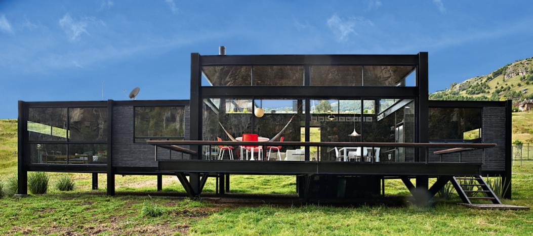 Desde los primeros esquemas del diseño, a cargo de Iván Baquerizo, la idea consistió en relacionarse con el sitio a través de la claridad geométrica que sugieren los bloques de piedra tallada. Formado en la Universidad de los Andes, y profesor de su Facultad de Arquitectura, Iván encontró inspiración en las Case Study Houses, un ejercicio convocado en 1945 por John Entenza, director de la revista Arts & Architecture. Este consistía en proponer el diseño de casas familiares en zonas campestres de California, con el fin de difundir la arquitectura moderna entre el público norteamericano, lo cual se logró a través de realizaciones de arquitectos y diseñadores como Richard Neutra, Craig Ellwood y Charles y Ray Eames.
