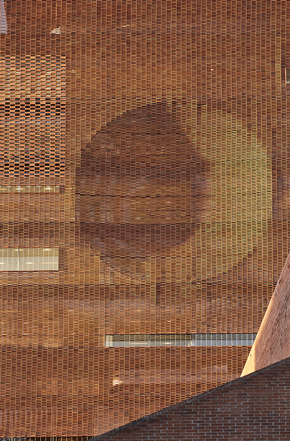 32.00 metros cuadrados de acero, concreto, vidrio y ladrillo son los protagonistas de la nueva sede del hospital, materiales de uso común en la arquitectura bogotana, pero que en este caso, su utilización rompe con lo tradicional, con lo conocido, incluso rompe con el paisaje urbano gracias a la celosía de ladrillo que viste las cuatro fachadas.