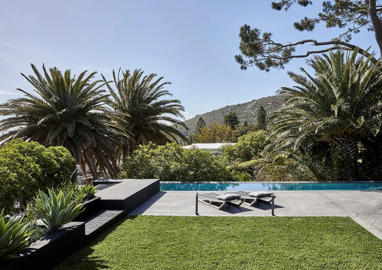 Aunque los cambios más dramáticos implicaron quitar el techo y derribar la mayoría de las paredes internas, el arquitecto expone que gran parte de su obra consistió en enmarcar y editar las panorámicas. Una vez más, un escenario típico de Camps Bay implicaría una mirada al mar por el frente, y una a la montaña por atrás. “También tuvimos vistas laterales y pequeños jardines”. Los propietarios habían trabajado mucho en estos últimos, por lo que existían espacios al aire libre muy bien establecidos. “No queríamos tocarlos. Se trataba de crear algo con intimidad, en torno a los árboles”.