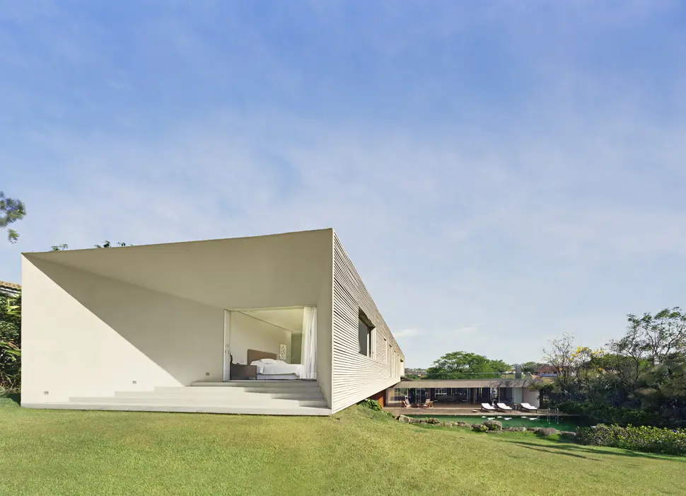 Esta producción residencial del arquitecto Isay Weinfeld, reconocido por sus construcciones contemporáneas, representa el ideal de un retiro suburbano con jardines privados, vistas lejanas y una piscina de aguas resplandecientes. Sin embargo, su función va más allá. Situada cerca de la ciudad de Piracicaba, al norte del estado de São Paulo, a unos 250 km de la frenética metrópolis brasilera, este ejemplo de arquitectura moderna tiene un singular poder unificador ya que es el punto de encuentro de una extensa familia. “La casa Piracicaba fue encargada por una clienta con dos hijos y nietos. Todos viven en São Paulo pero tienen en el campo familiares a quienes visitan con frecuencia y su deseo era lograr una vivienda donde se reunieran confortablemente”, explica el arquitecto en cuyo portafolio están proyectos emblemáticos como el Hotel Fasano de São Paulo y el bar Baretto.