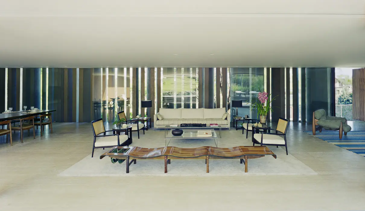 “Todo el amueblamiento se escogió o se diseñó especialmente para esta casa”, señala Weinfeld. El propio arquitecto creó algunas piezas exclusivas para la casa como el cabecero de la cama y la combinación de escritorio y sofá de una de las habitaciones, sutilmente complementada con una silla Esterinha, diseño de Charles Eames.