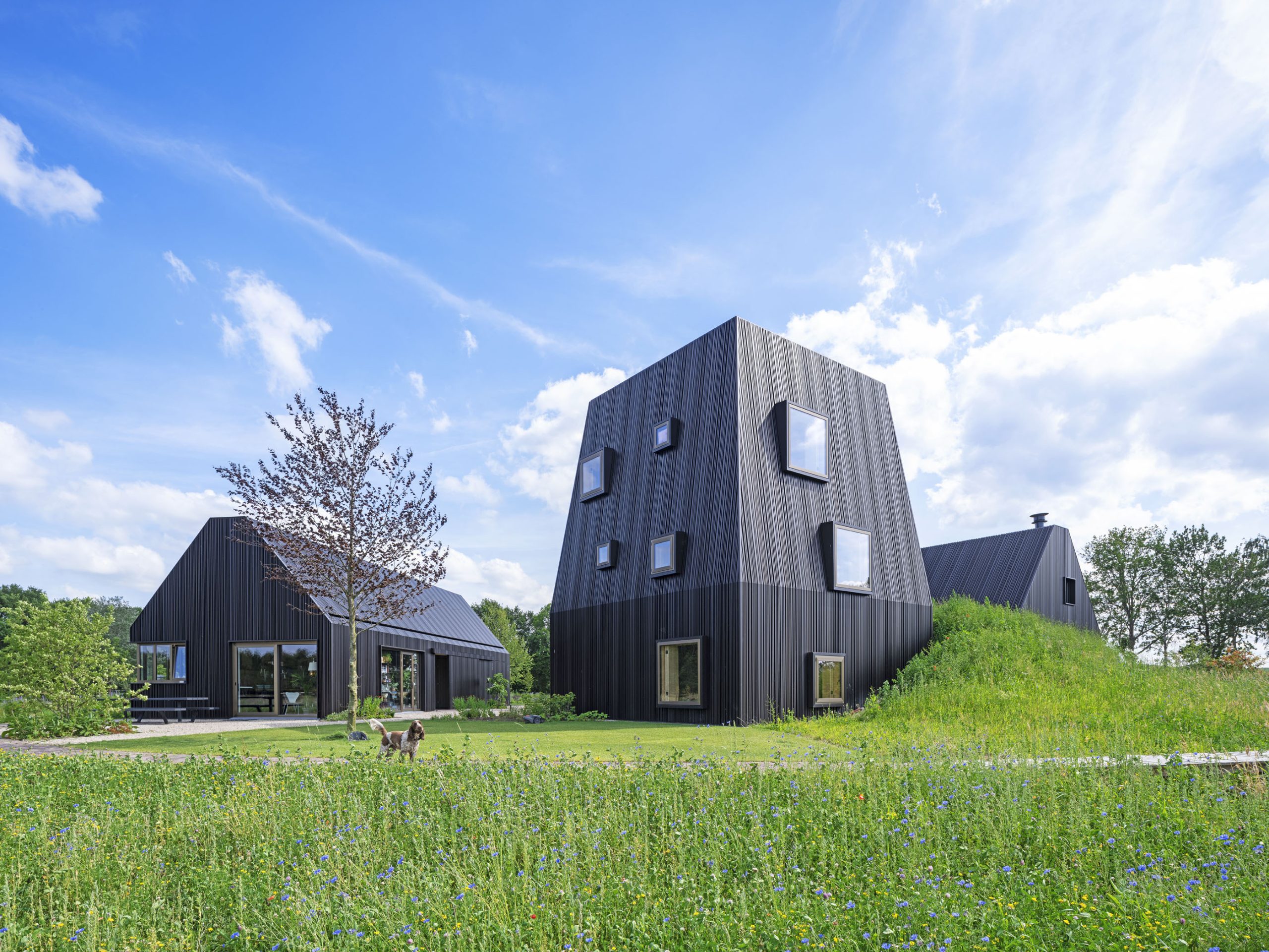 Con un área construida de 683 metros cuadrados, la residencia se fragmenta en tres volúmenes que delimitan un patio descubierto. La expresión del proyecto recoge las formas de las granjas holandesas tradicionales, típicas de la región de Vught donde se ubica.