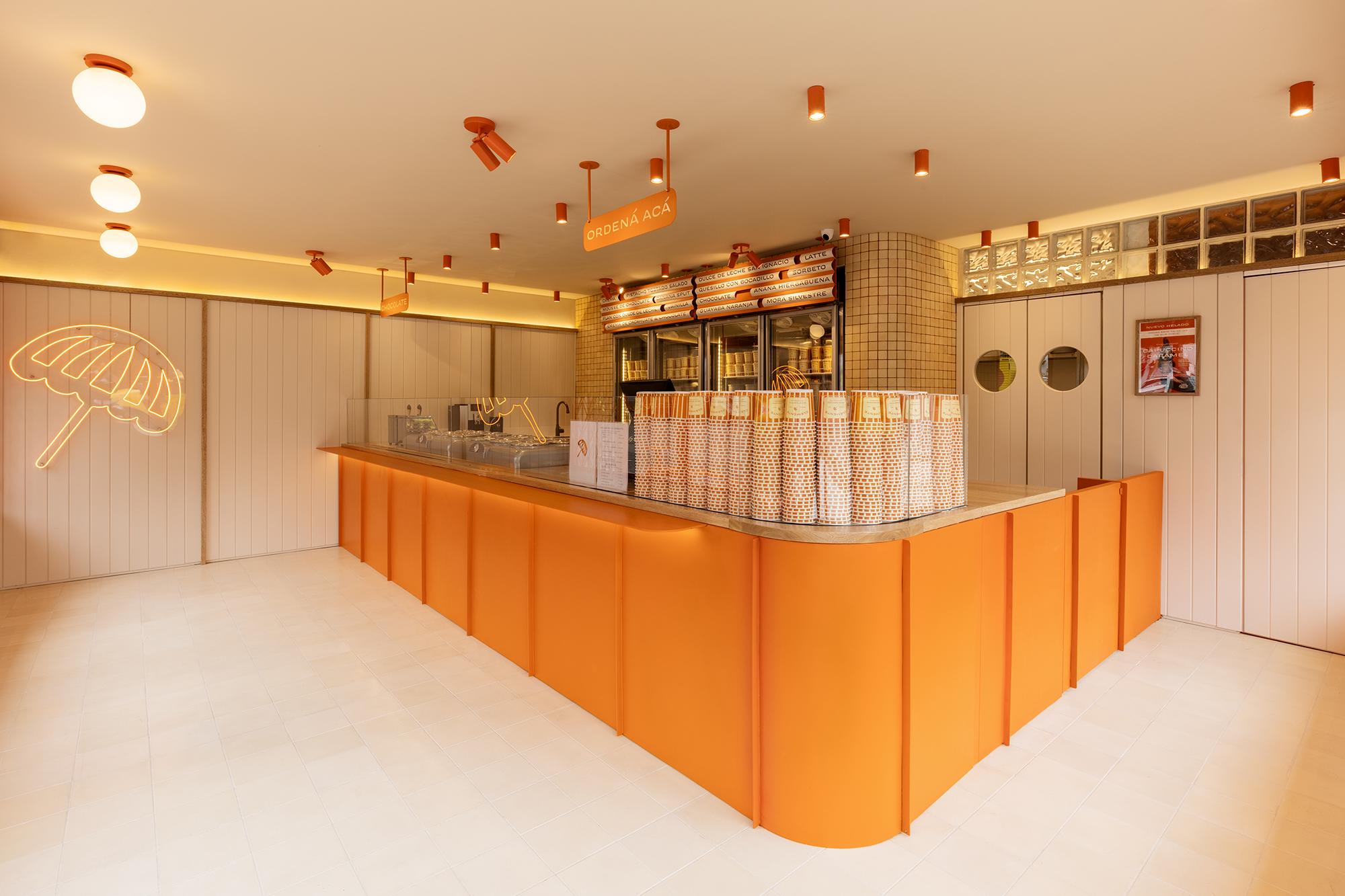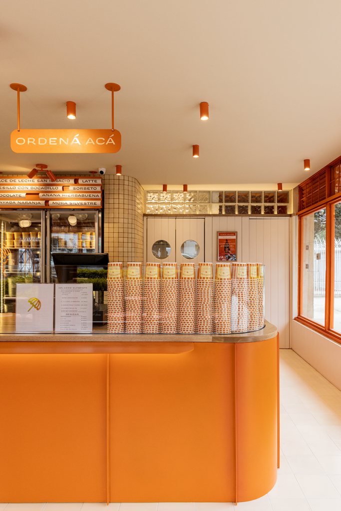 De hecho, pensando en ese aspecto visual, en el manual arquitectónico de marca que hicieron contemplan que en las siguientes sedes de Clemente se utilicen otros colores de sabores de helado. “Este es color naranja, pero habrá heladerías en verde pistacho y marrón chocolate”.