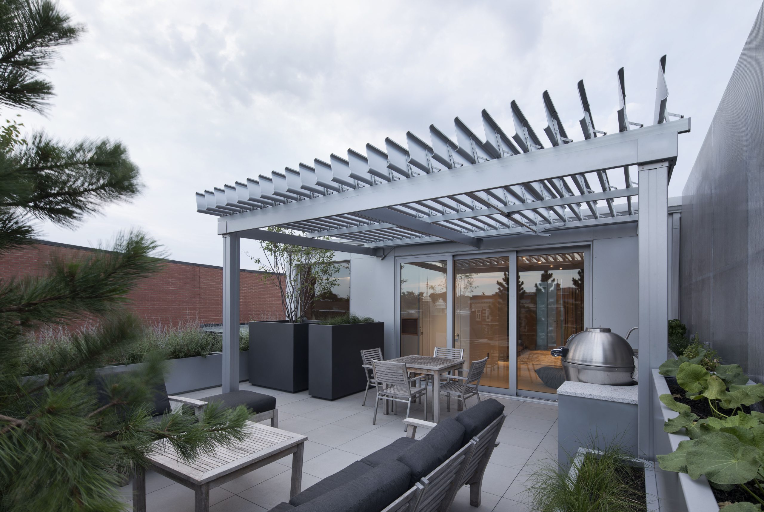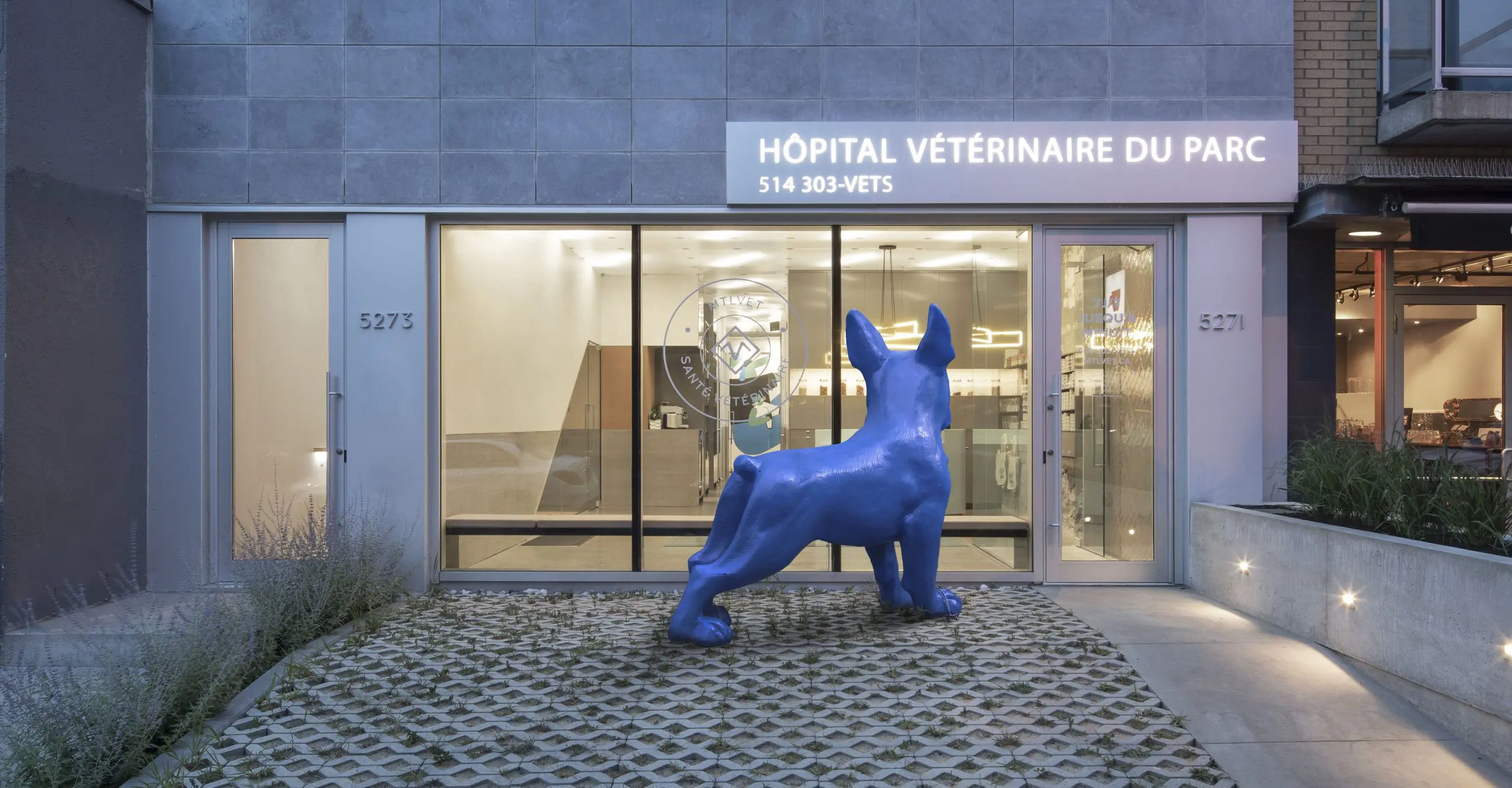 Un elemento central del diseño es un patio central que canaliza la luz natural hacia el centro de la estructura y proporciona un acceso y ventilación eficientes para todos. La unidad delantera, perteneciente al veterinario, da a una gran terraza oculta en la azotea con vista al Monte Real de Montreal.