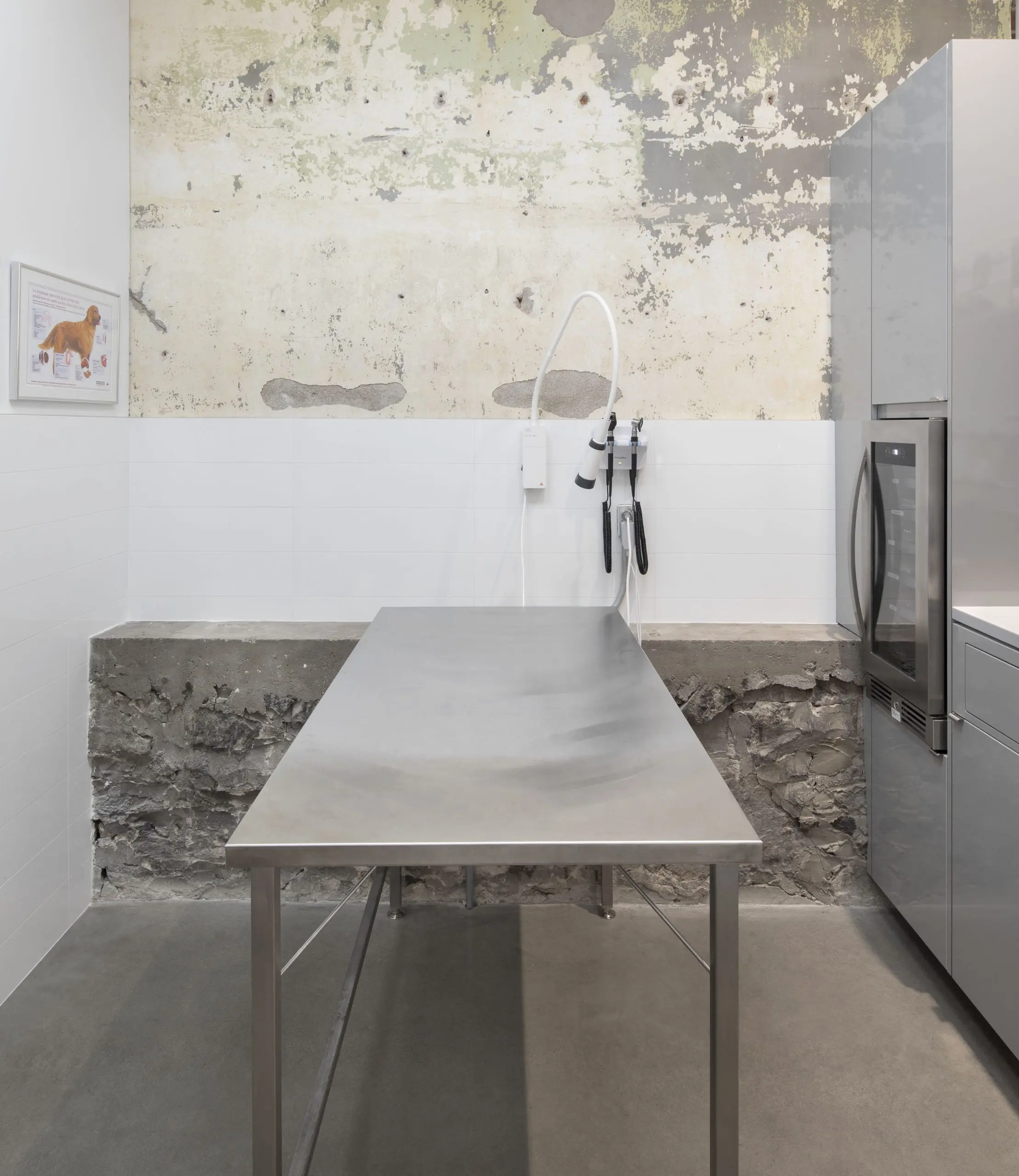 Los espacios técnicos se organizan de manera eficiente alrededor de una columna de circulación central, lo que permite una recepción amplia donde los animales y los propietarios pueden circular libremente.